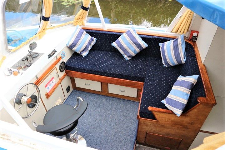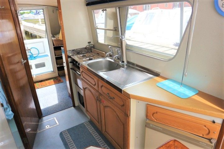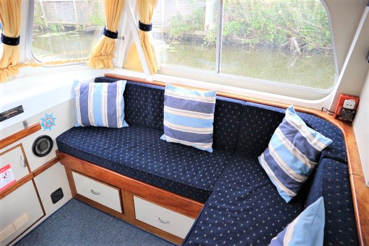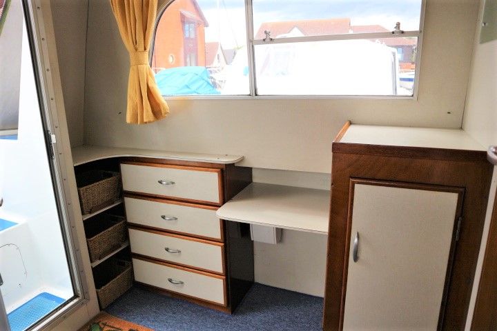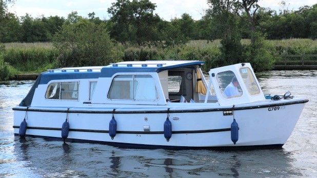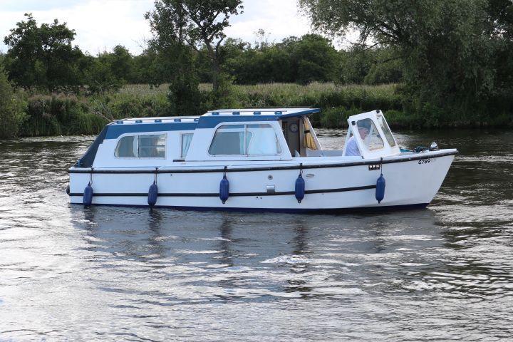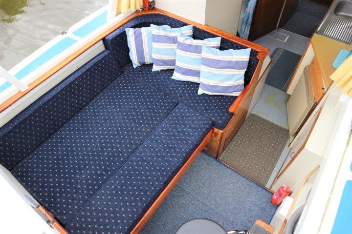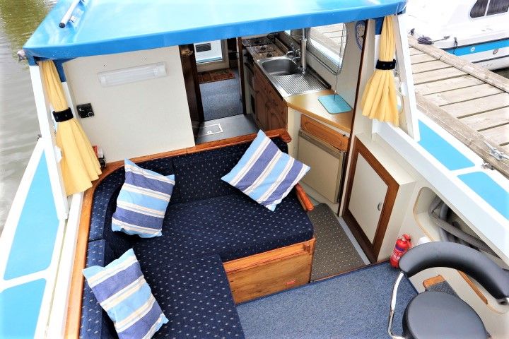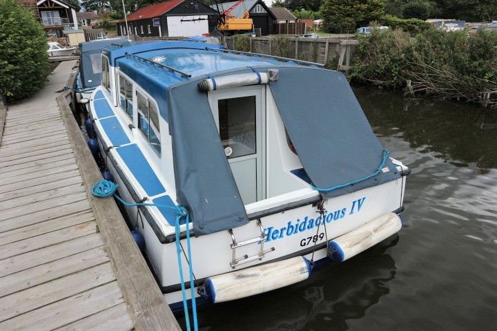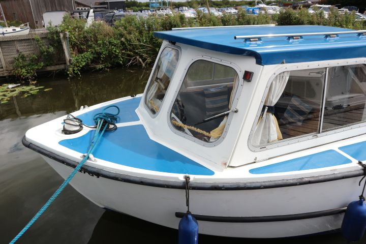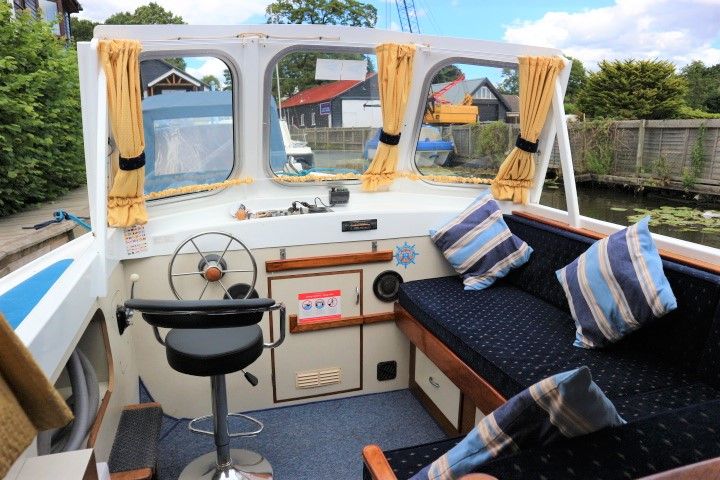 HAMPTON SAFARI 25 – Built 1974 – 1 x BMC 1.5 Diesel engine. 4 berth accommodation in cabin and saloon with 1 x toilet & shower compartment. Spec including shore power, battery charger, immersion heater, warm air heating, electric toilet to holding tank, galley with electric fridge, antifouled 2017. BSC 2018. A clean example of these popular river cruisers and low airdraft allowing passage under all broadland bridges.