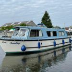 HAMPTON SAFARI 25 – 1977 – Powered by a single Nanni 4.150HE 38hp diesel through a shaft – 4 berth accommodation with toilet and shower – Specification to include; Propex warm air heating, holding tank, shore power with 240v supply, search light, hob, oven, grill, hot and cold water, 12v sockets. Sliding saloon roof. In current ownership for 23 years! Loving kept, maintained and upgraded. A fine example of these ever popular classic Broads cruisers!