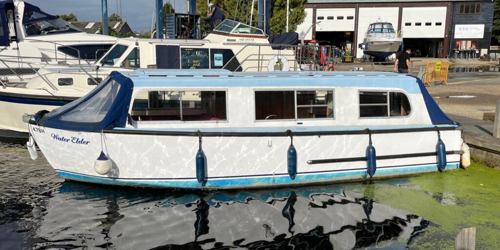 Hampton Safari MK3 – 1978 – Powered by a BMC 1.5 36HP diesel engine through shaft. Up to 4 berth accommodation in cabin and saloon with 1 x toilet/shower. Specification including warm air heating, shore power, battery charger, clipper duet log and depth, fridge, radio/CD player, aft and forward well covers. A popular river cruiser with low air draft and comfortable accommodation.