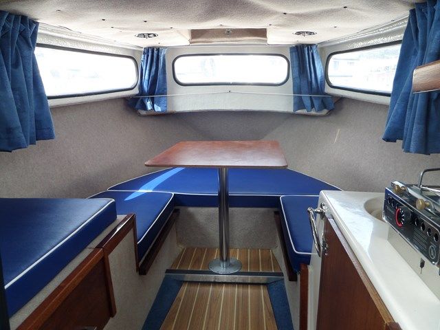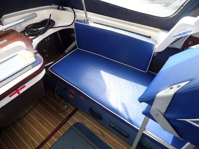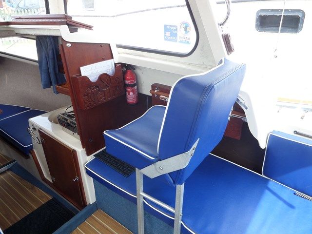 HARDY 18 NAVIGATOR – 1981, 1 x Honda Four Stroke 20Hp petrol outboard electric tilt & start/stop outboard, 2 berths in 1 cabin, 1 x chemical toilet, Boat Safety Certificate until: 2016. New upholstery & curtains, teak and holly floors, new canopy 2012. Engine service and antifouled July 2013. A very nice example. AS TRADED IN.