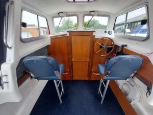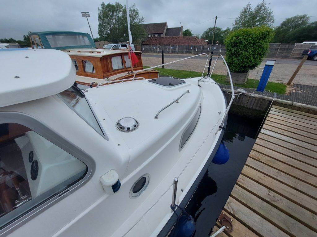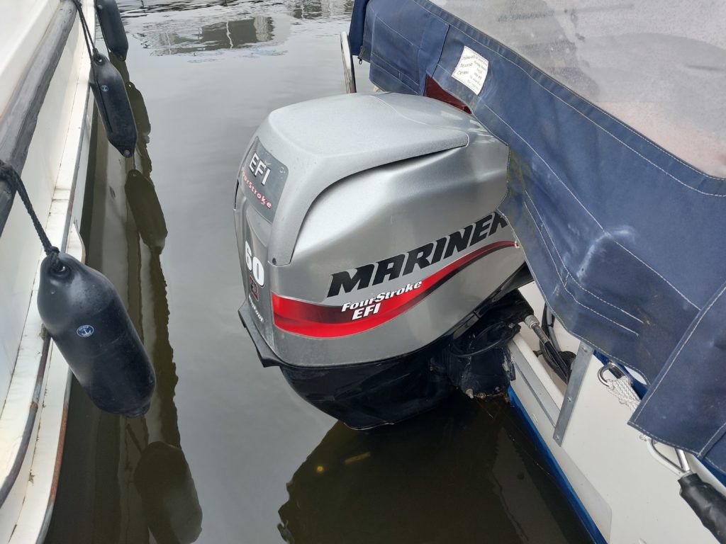 Hardy Bosun – 2013 – Single Mariner Big Foot 4 stroke EFI outboard engine. 2 berth accommodation in 1 cabin. Specification to include; Stainless steel pulpit, handrails, cleats and bow roller. Teak effect storage covers, wooden engine cover, full canopy. A really lovely late example of the Hardy Bosun 20. One of the last five built. BSC 15/07/2025.