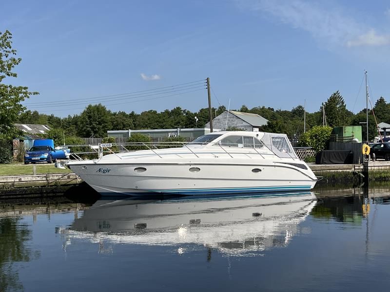 HARDY SEAWINGS 355 – 1996 – 2 x Volvo Penta KAD42 230hp diesel engines on duo prop sterndrives. Comfortable 6-berth accommodation in two cabins and saloon, one toilet and shower compartment. Specification to include; Sidepower bow and stern thrusters, immersion heater/calorifier, 240v shore power, Victron battery charger/inverter, Eltrim trim tabs, electric engine bay lift, holding tank, Simpson davits, solar panel, Webasto heating system, electric winch, Raymarine autopilot, speed and depth, Garmin GPSMAP x2. Antifouled, engines and legs serviced 2023.  An eye-catching family sports cruiser, meticulously maintained with many modern upgrades. Early viewing is recommended!