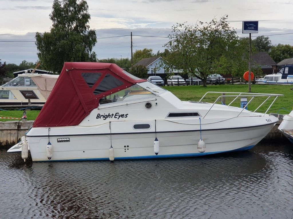 HIGHCRAFT TOMAHAWK 23 SUNDECK – Circa 1997 – Powered by a single Honda GD1250 24hp diesel through a shaft! – 4 berth accommodation with toilet and shower. Specification to include; Propex warm air heating, galley with flavel B700C oven, grill and hob, 2 burner hob and sink with hot and cold supply, 12v supply, domestic water pump and engine instrumentation. Sought after single diesel economy through a shaft! Ideal introduction into Broads boating.