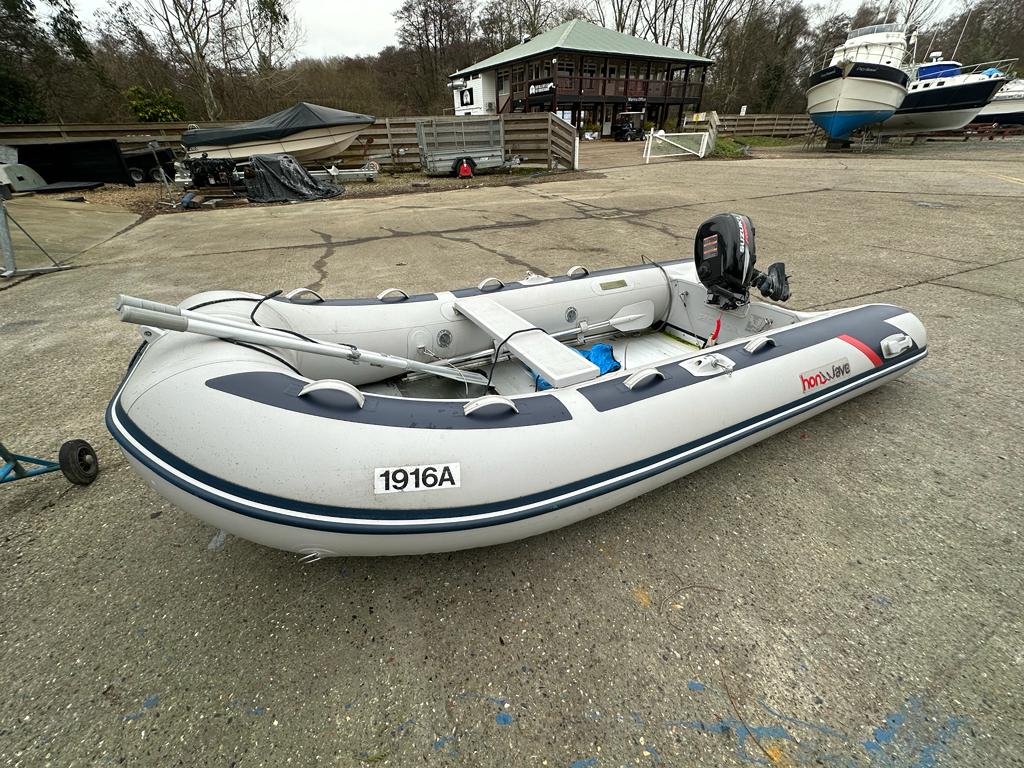 Honwave MX-350 inflatable dinghy – 2022 – Suzuki DF4 4hp outboard engine – engine kill cord, bench seat board, aluminium flooring, paddles, davit lifting points, ideal use as a tender , carry holdall.