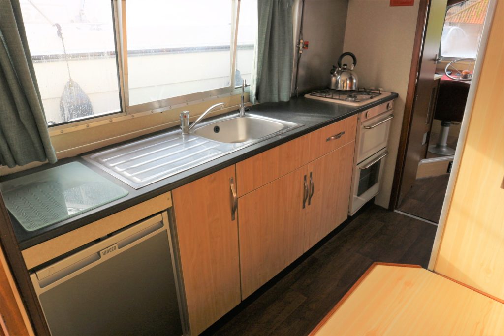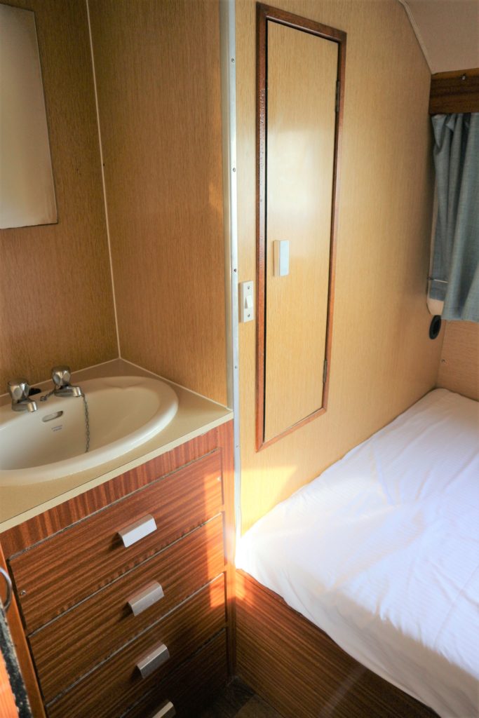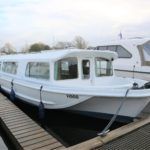 HORIZON 35 – Circa 1975 – Powered by a BMC 1.5 (36hp) diesel engine. 6 berth accommodation in 3 cabins and saloon with separate toilet and shower compartments. Large galley with 4 burner hob, oven, grill, electric fridge and ample storage. Fitted with warm air heating. BSC 06/23. A great layout offering versatile accommodation for family and friends. Low airdraft allowing access to the whole broads network. Ideal for extended cruising or as a live aboard.