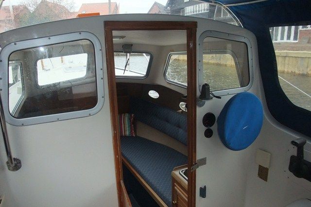 HUNTER LANDAU 20 – Built 1999. With Single Yamaha F50 4 Stroke Petrol Engine. 2 berth award-winning capable motor boat. The Innovative hull shape reduces wash and is renowned for its stability. Equally suited to inland or coastal cruising.