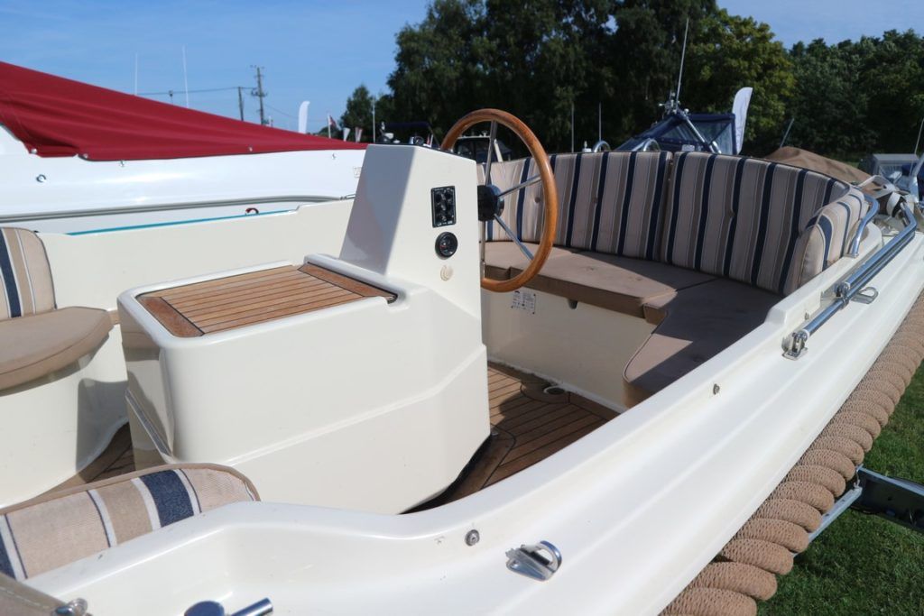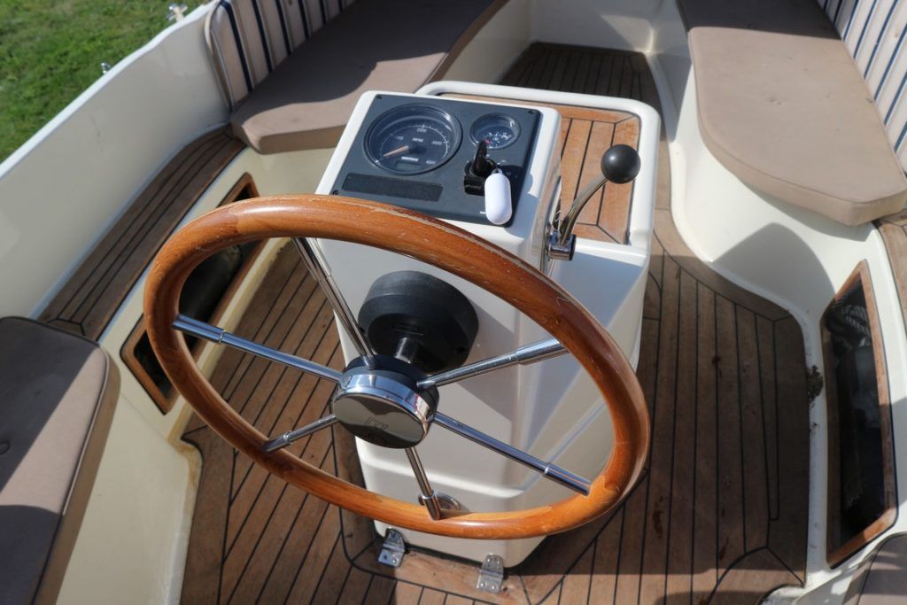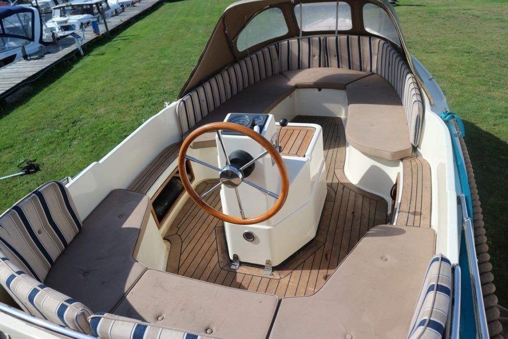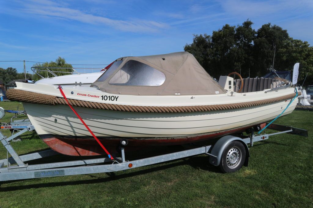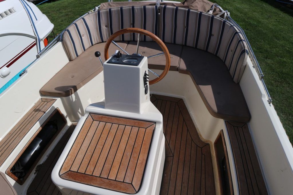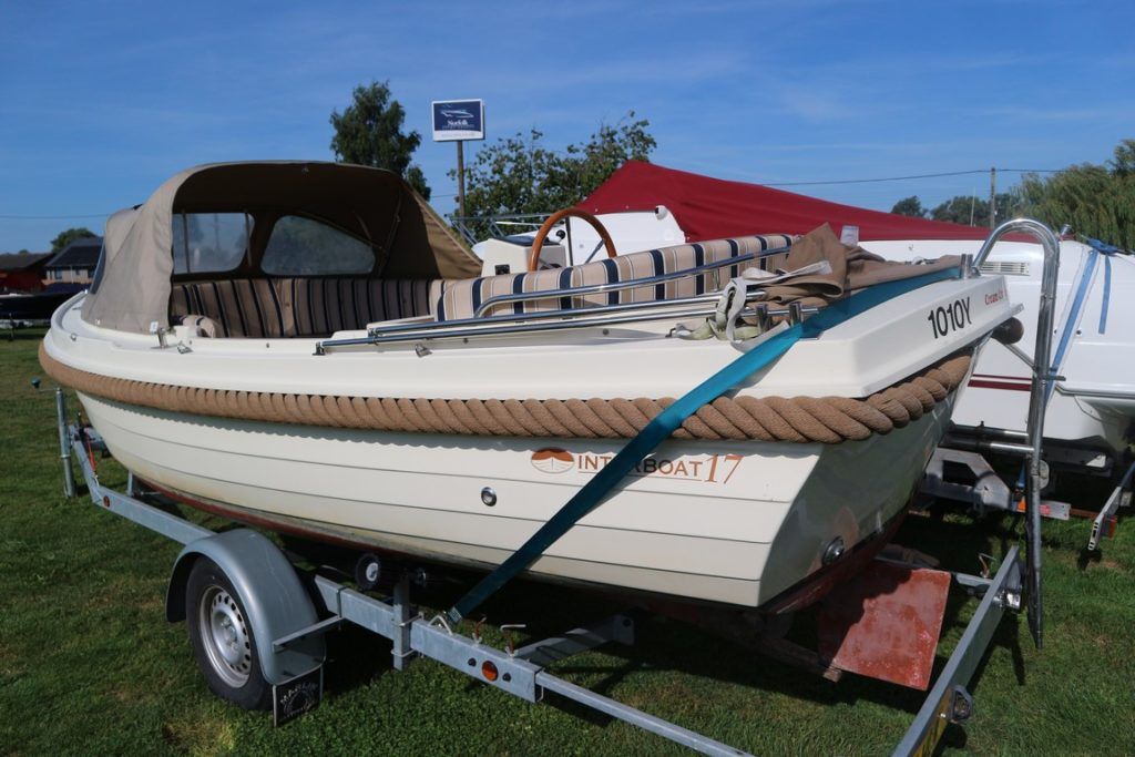 INTERBOAT 17 – 2008 – Powered by a single Vetus M2.06 16hp diesel. 12v socket, navigation lights, battery charger, all over cover & bimini and teak laid cockpit floor! Shaft drive with the single diesel economy. The Interboat is a beautiful launch, ideal for inland boating, great access throughout the Broads network. Trailer included! The current owner has had her on the Broads since May 2017, previously kept on the Dutch canals.