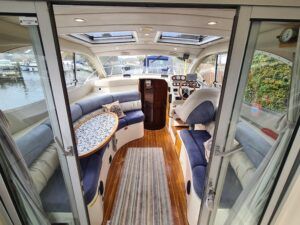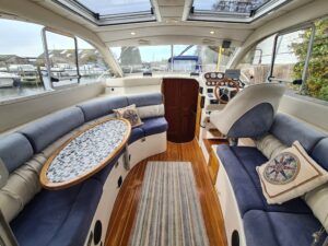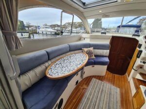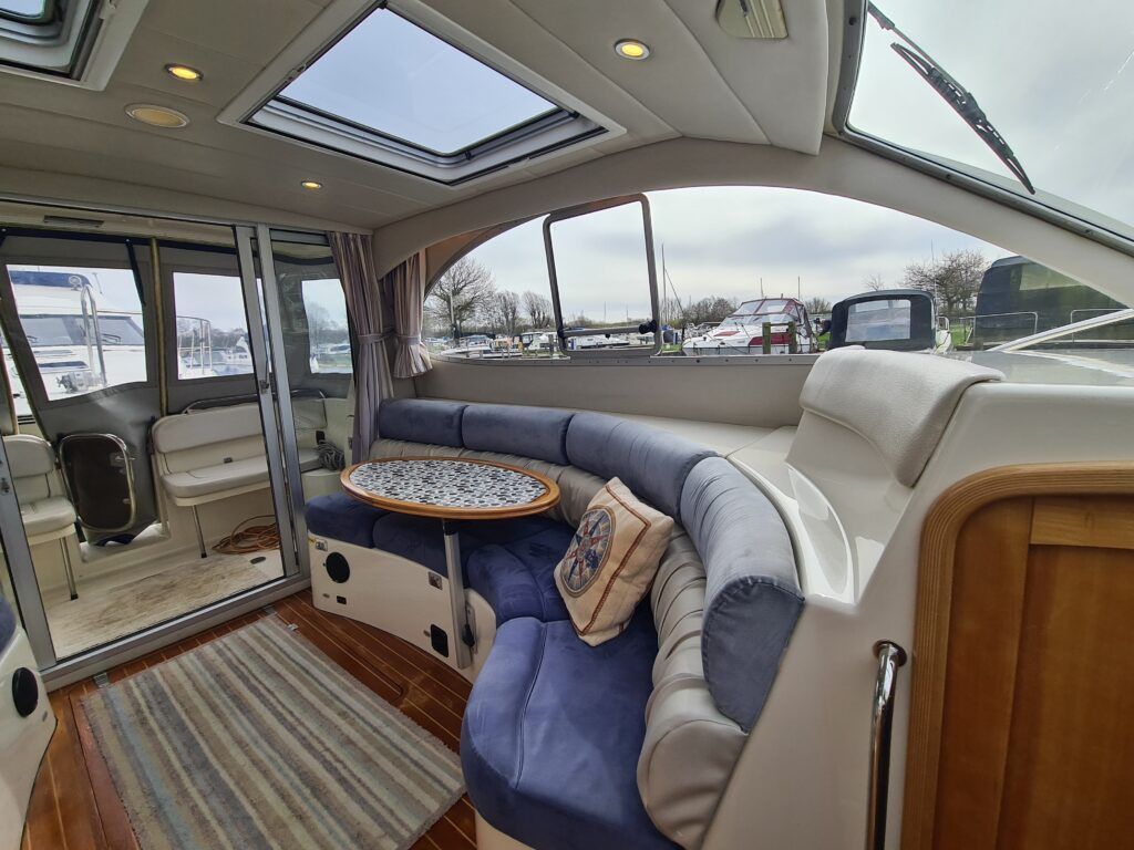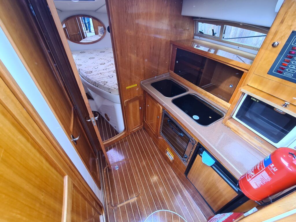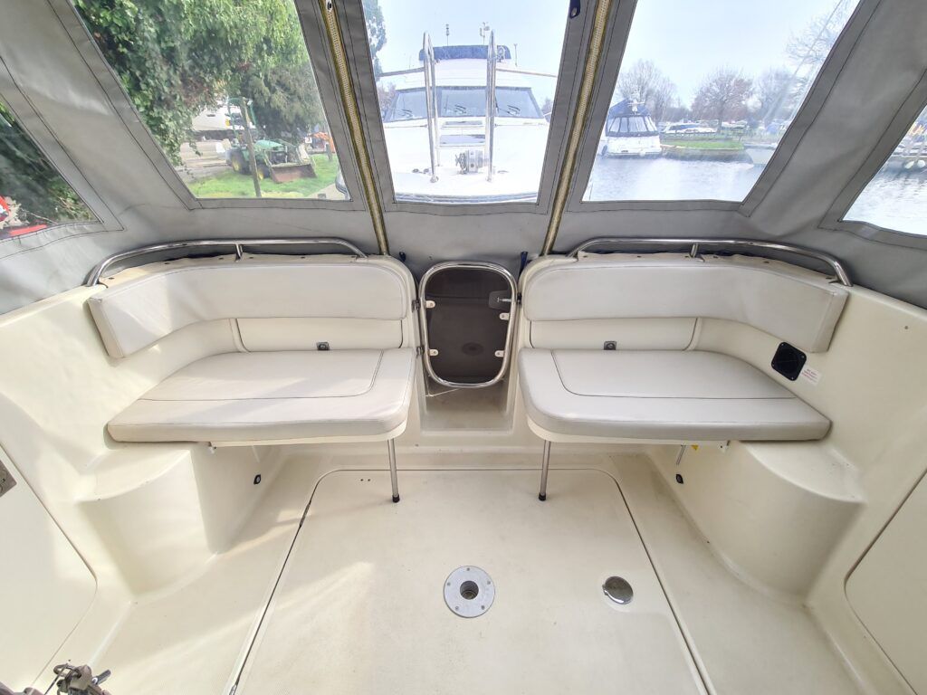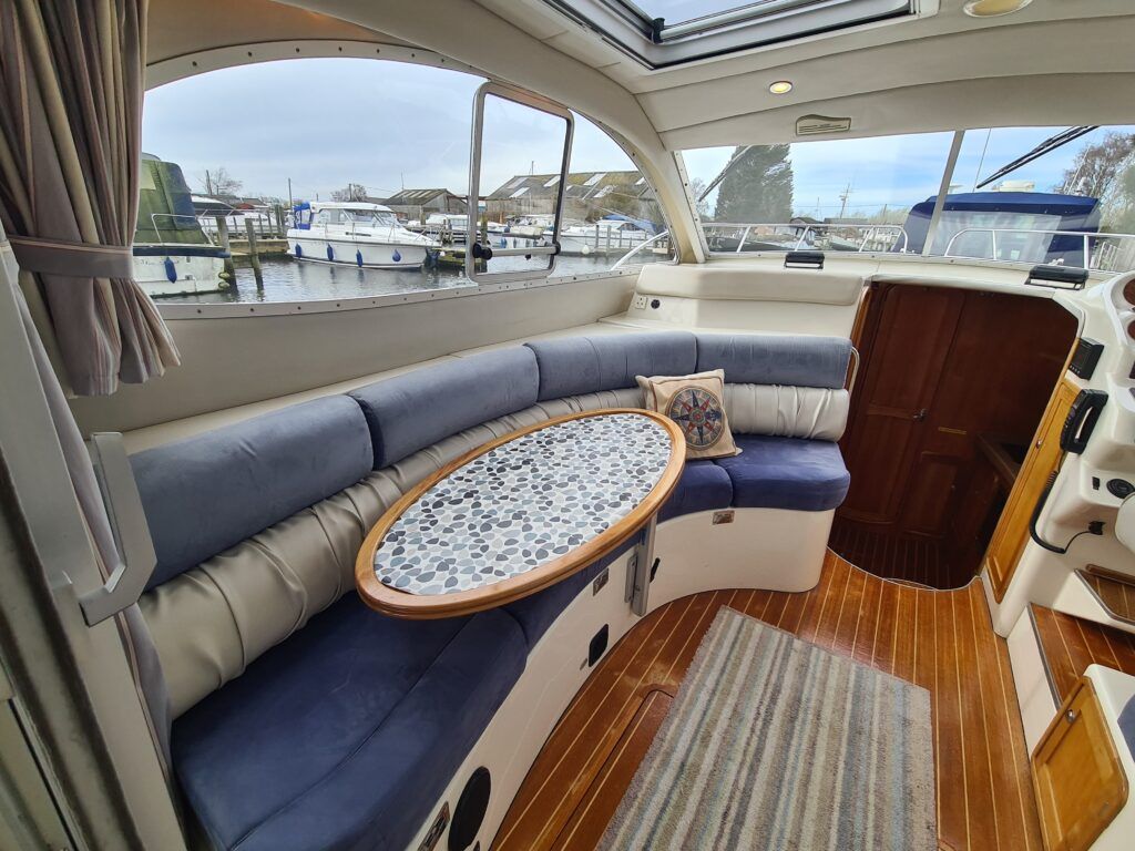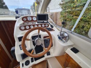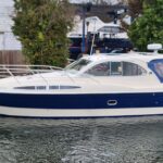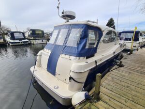 Ernecraft ISIS 920 – 2006 – Yanmar 4LH 154hp Diesel engine on shaft – 7 berth accommodation with 1 x toilet/shower. Specification including bow thruster, warm air heating, Shore power, battery charger, immersion, Raymarine auto pilot, Simrad VHF, Garmin GPS , radar, anchor winch, trim tabs, davits, BSC to 12/27. A spacious and airy cruiser presented in beautiful condition, ideal for family boating both inland or offshore.