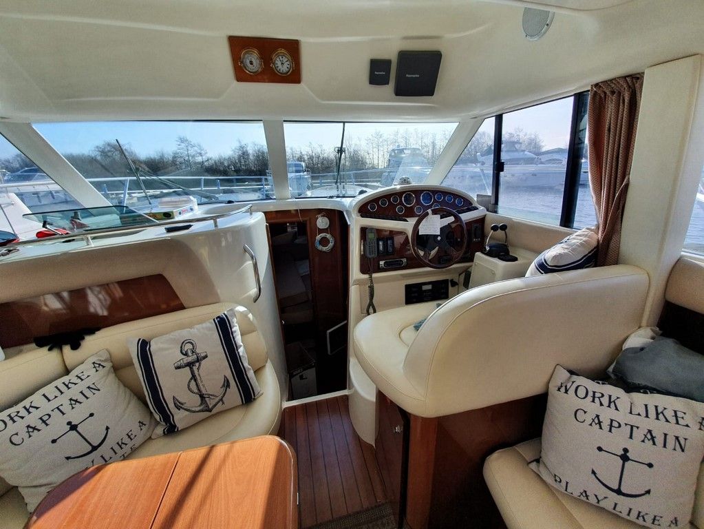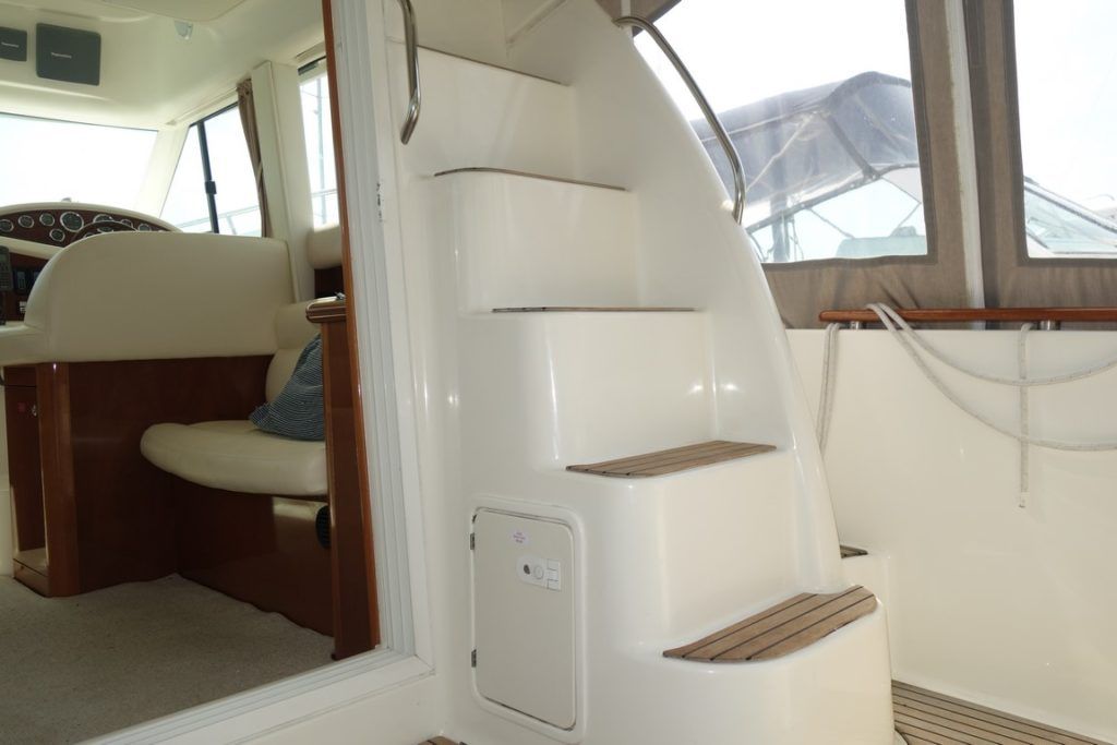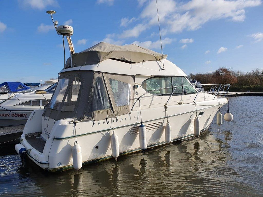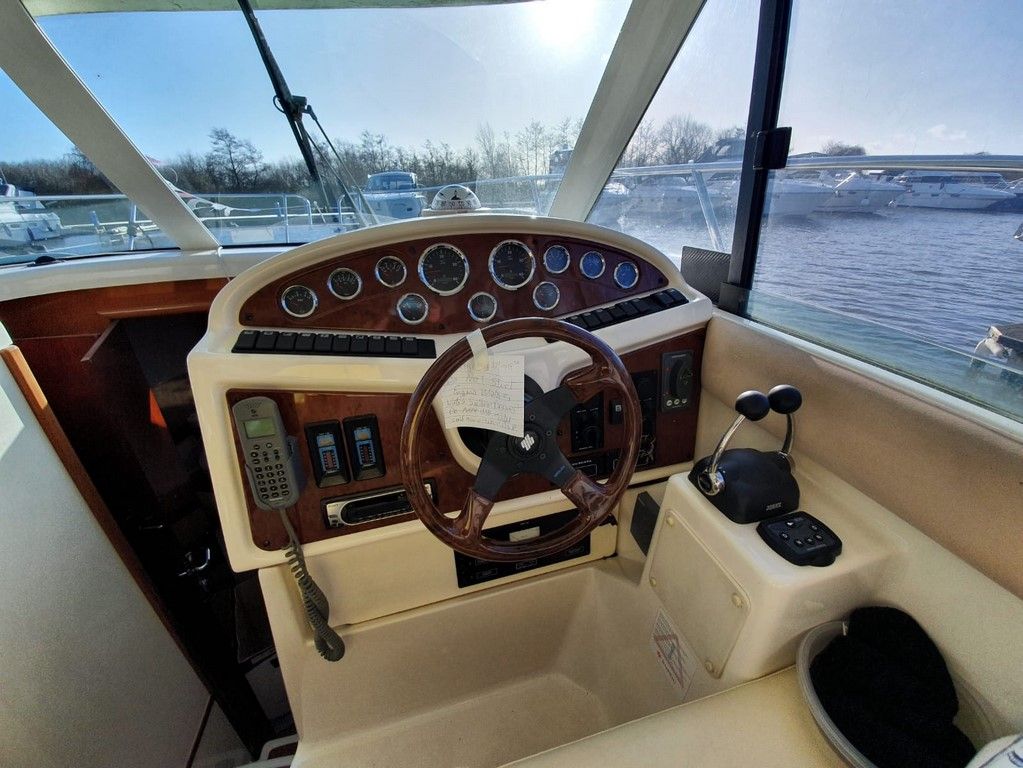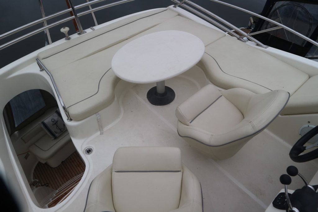 JEANNEAU PRESTIGE 32 – 2003 – Twin Volvo Penta KAMD300 285HP Diesel Engines. 6 berths including a large island double berth with 1 toilet to holding tank and 1 shower. Specification to include; Bow and stern thruster with remote, Warm air heating system, Trim tabs, Battery charger, Shore power, Raymarine chart plotter, Autopilot, leather upholstery. The Prestige 32 is a great introduction into offshore cruising! A compact and versatile cruiser.