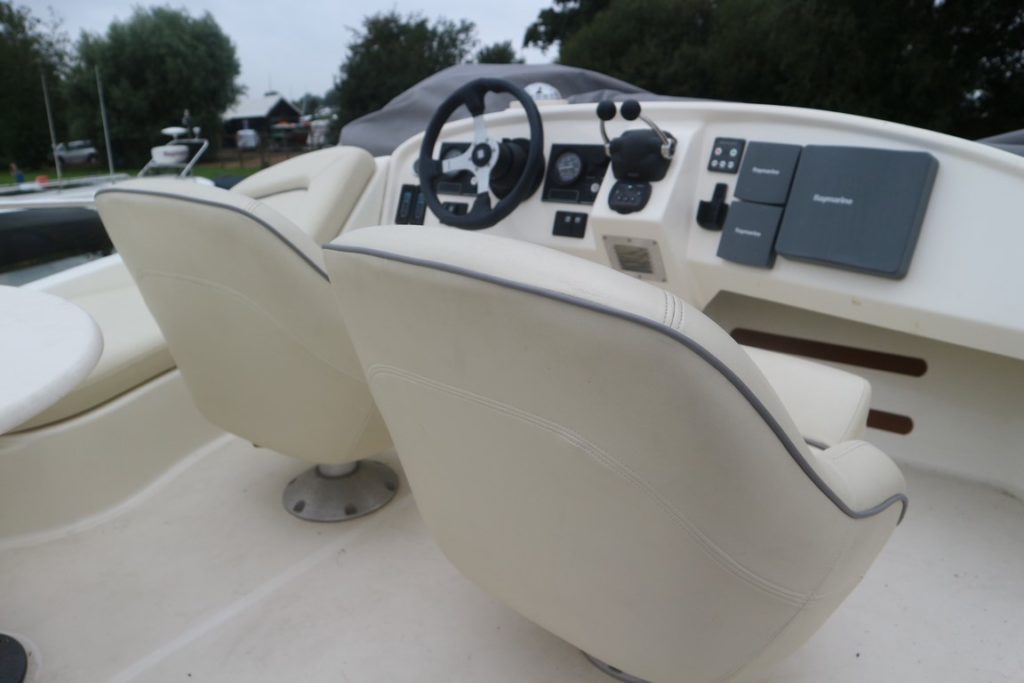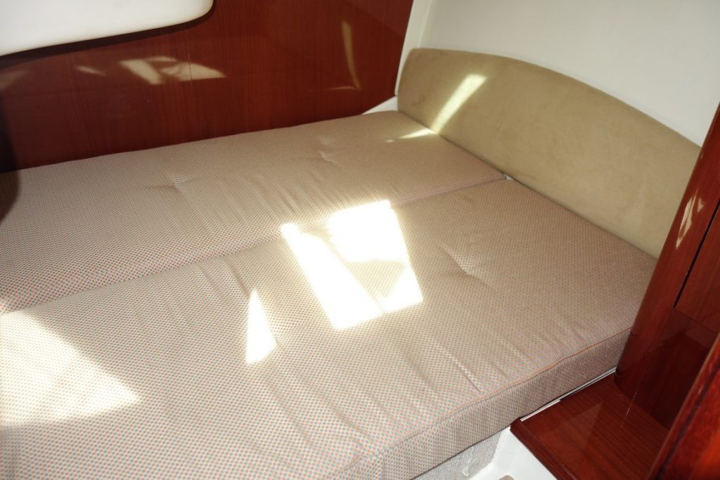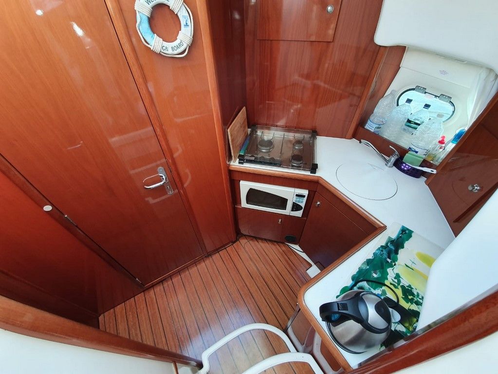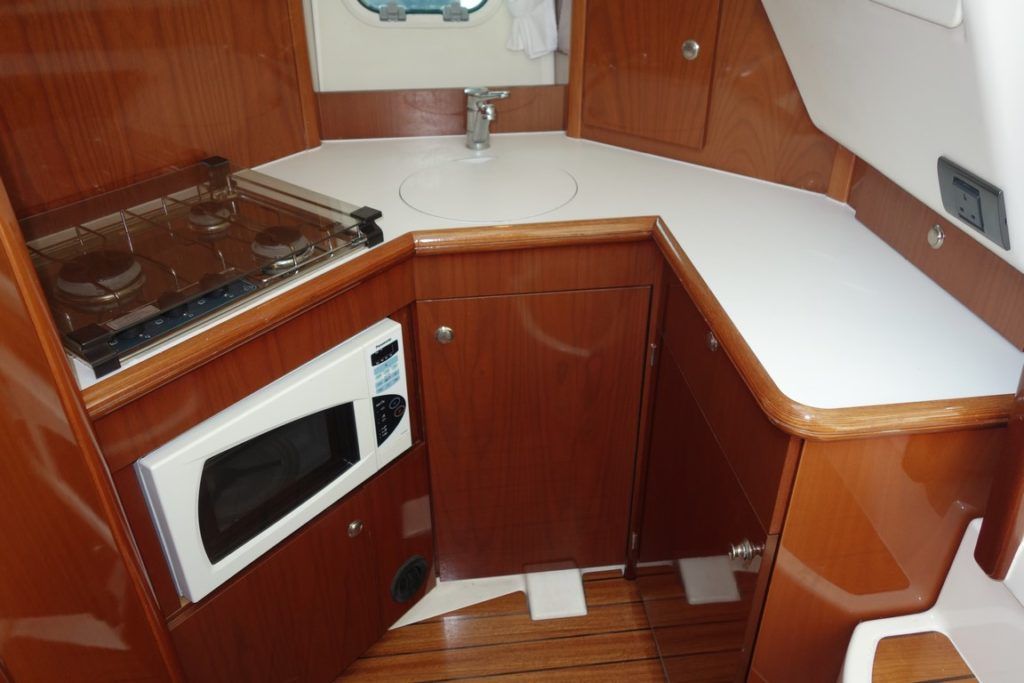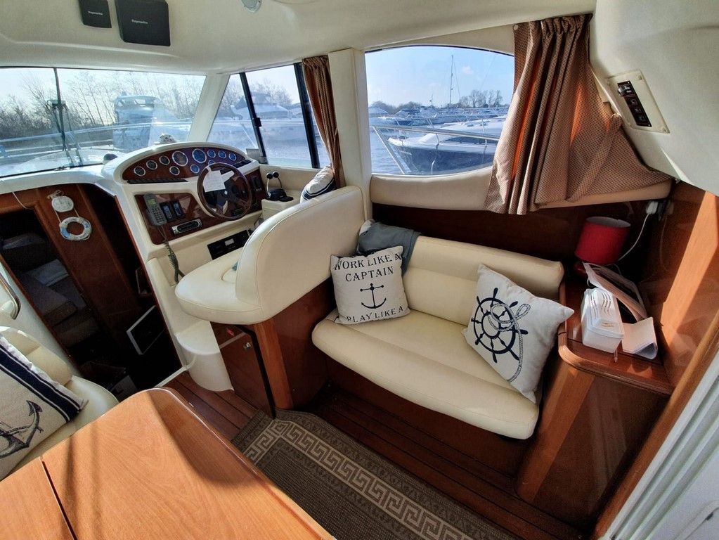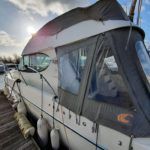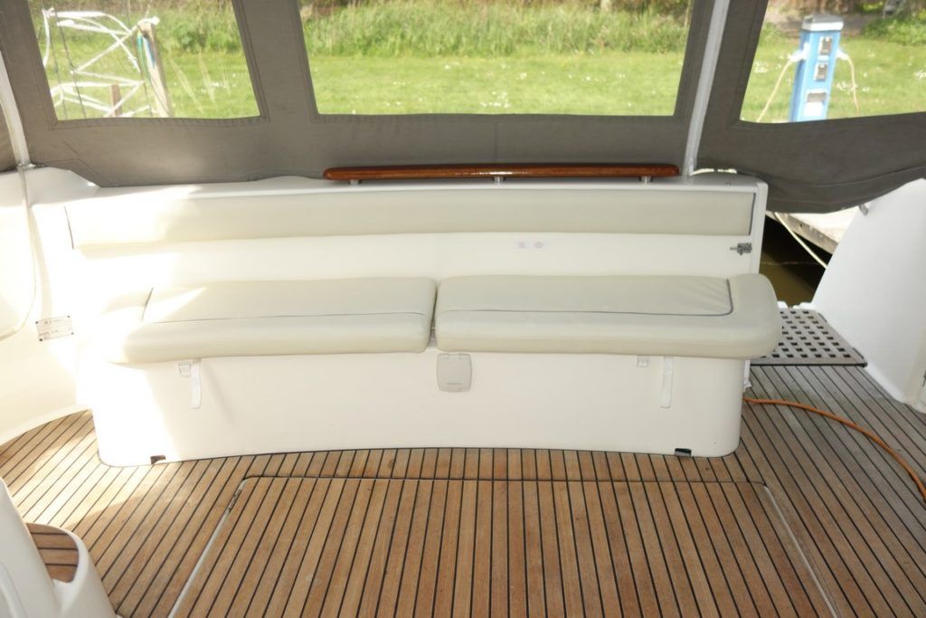 JEANNEAU PRESTIGE 32 – 2003 – Twin Volvo Penta KAMD300 285HP Diesel Engines. 6 berths including a large island double berth with 1 toilet to holding tank and 1 shower. Specification to include; Bow and stern thruster with remote, Warm air heating system, Trim tabs, Battery charger, Shore power, Raymarine chart plotter, Autopilot, leather upholstery. The Prestige 32 is a great introduction into offshore cruising! A compact and versatile cruiser.