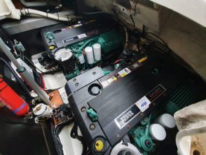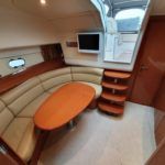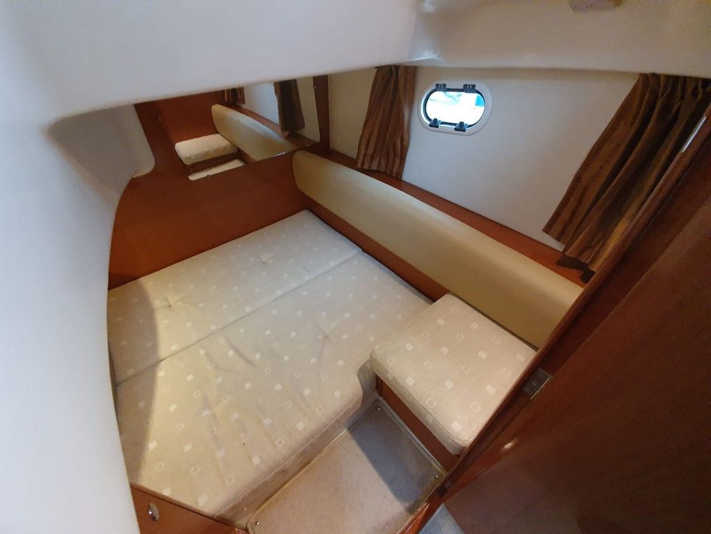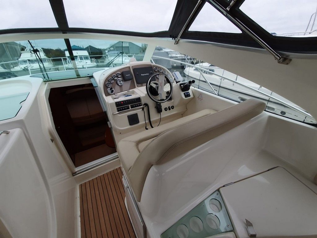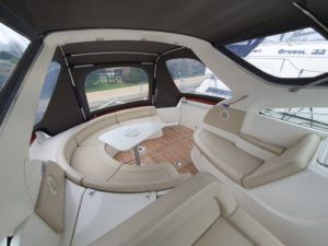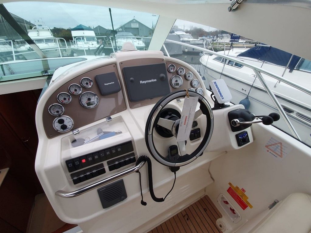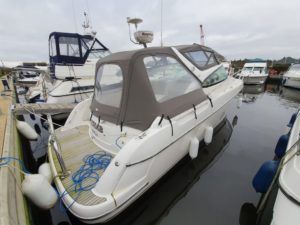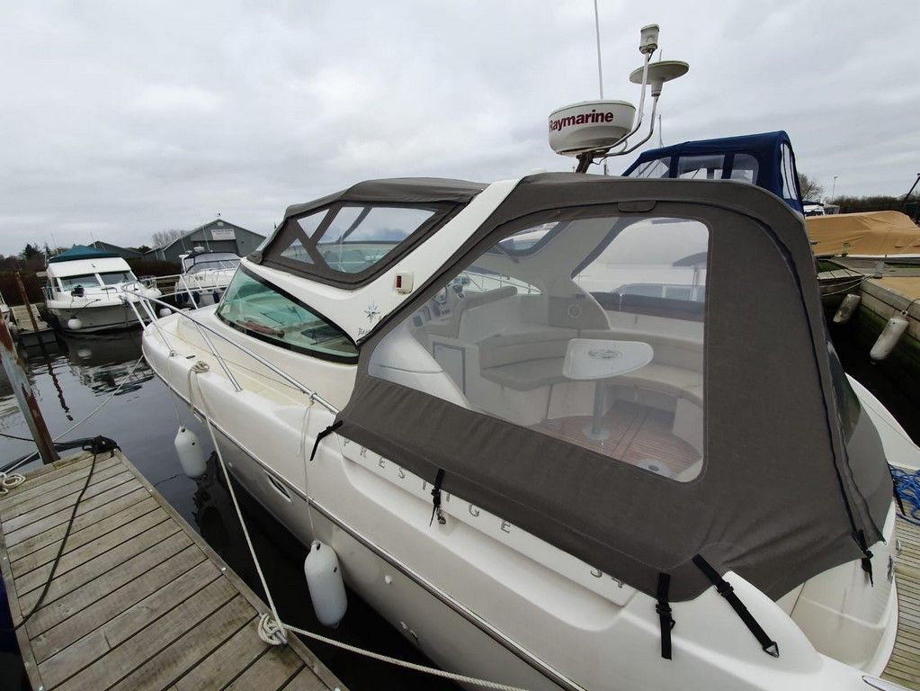 JEANNEAU PRESTIGE 34 – 2007 (2008 model) – Powered by twin Volvo D4 260hp diesels. 4 berth accommodation with toilet and shower. Specification to include; Bow and stern thrusters, electric windlass, holding tank, webasto warm air heating, shore power supply and a range of navigation equipment to include Raymarine C80 plotter, VHF and tridata. Teak laid cockpit and bathing platform. Less than 450 hours run! New canopy 2019. A stylish sports cruiser presented in very good order!