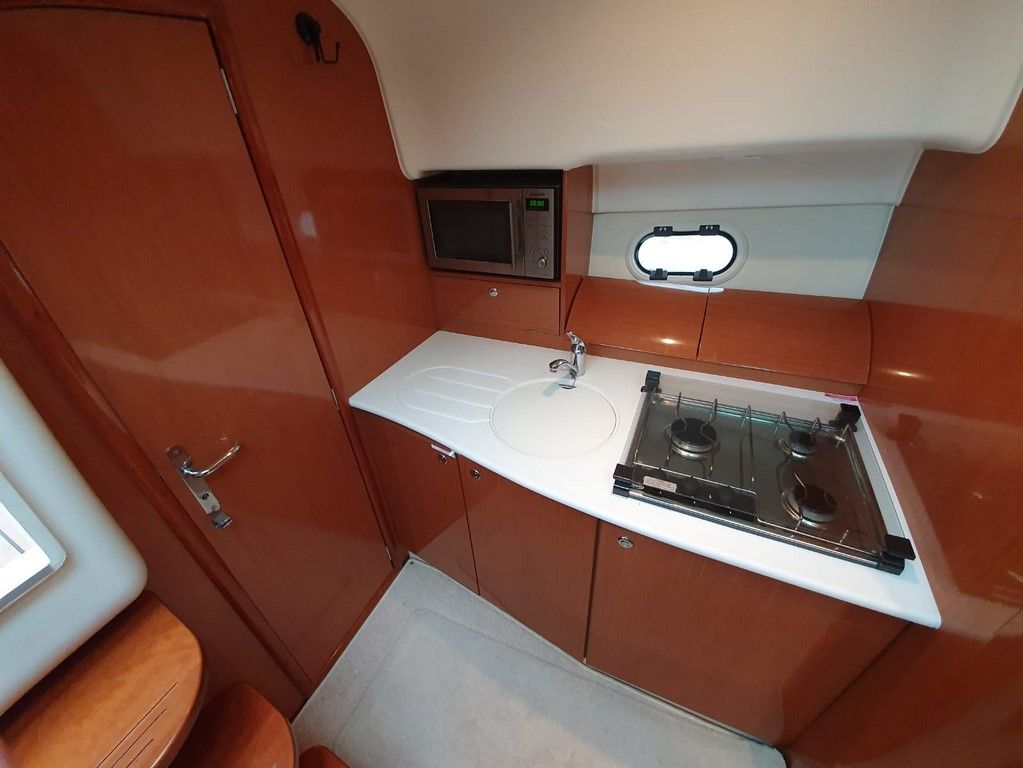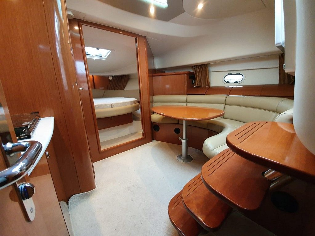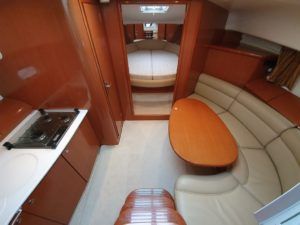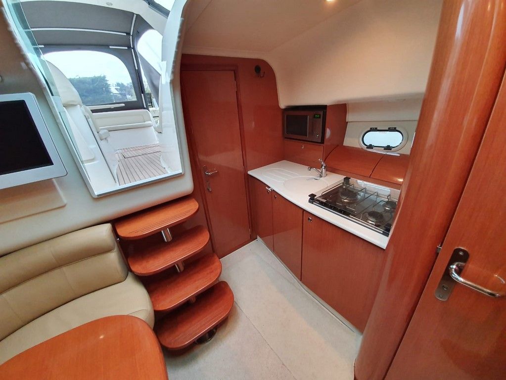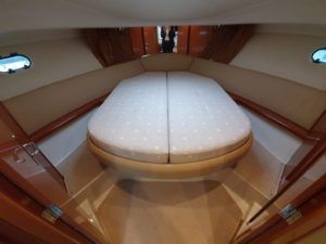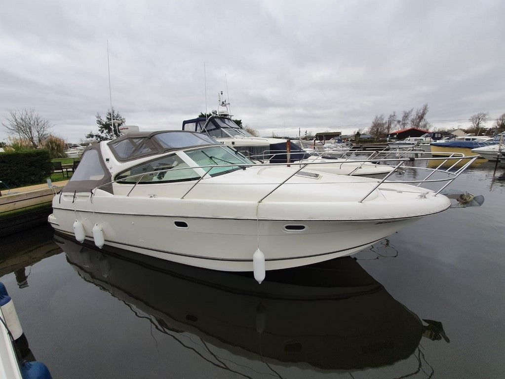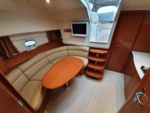 JEANNEAU PRESTIGE 34 – 2007 (2008 model) – Powered by twin Volvo D4 260hp diesels. 4 berth accommodation with toilet and shower. Specification to include; Bow and stern thrusters, electric windlass, holding tank, webasto warm air heating, shore power supply and a range of navigation equipment to include Raymarine C80 plotter, VHF and tridata. Teak laid cockpit and bathing platform. Less than 450 hours run! New canopy 2019. A stylish sports cruiser presented in very good order!