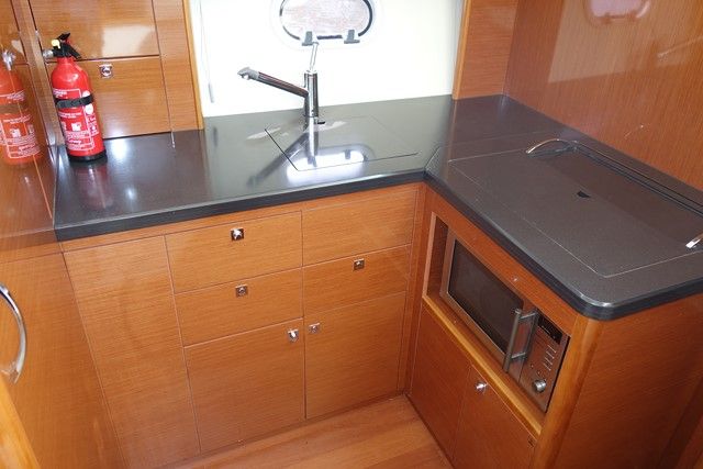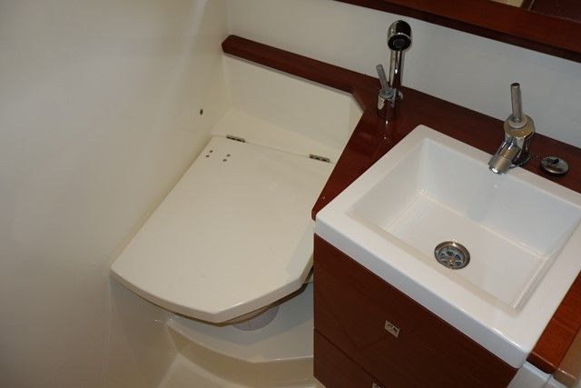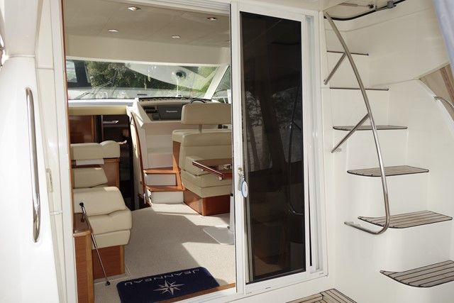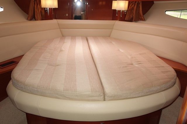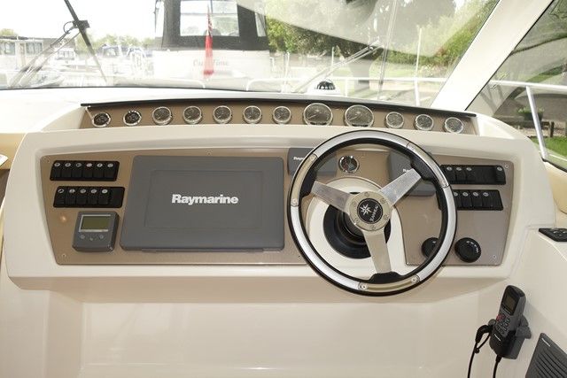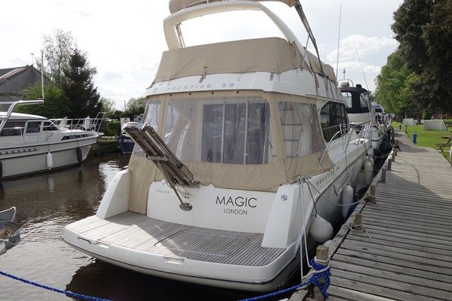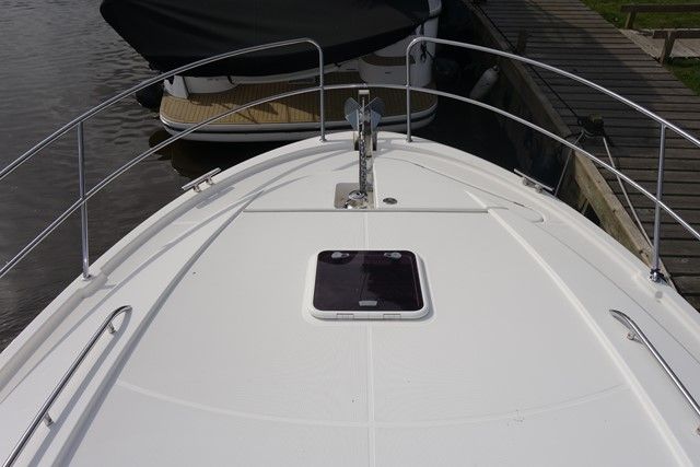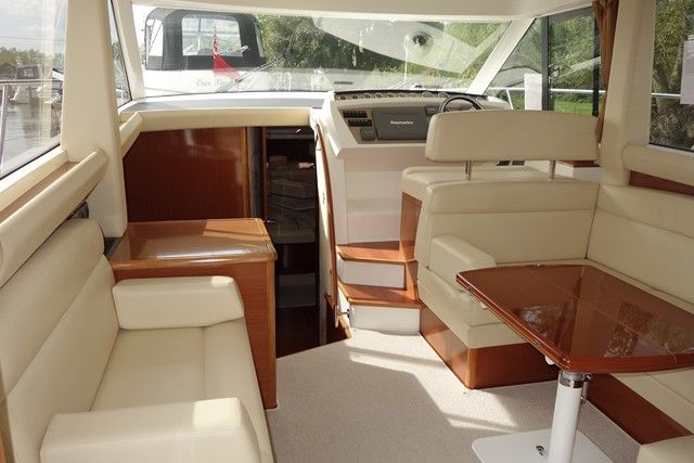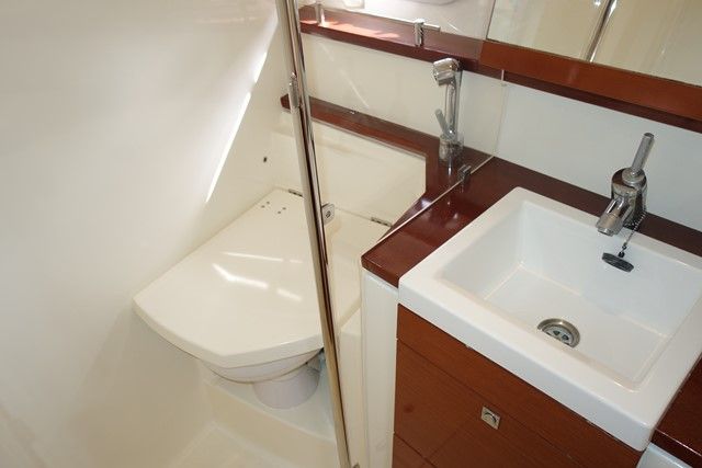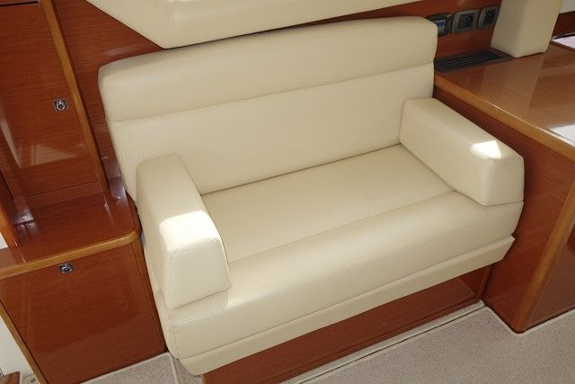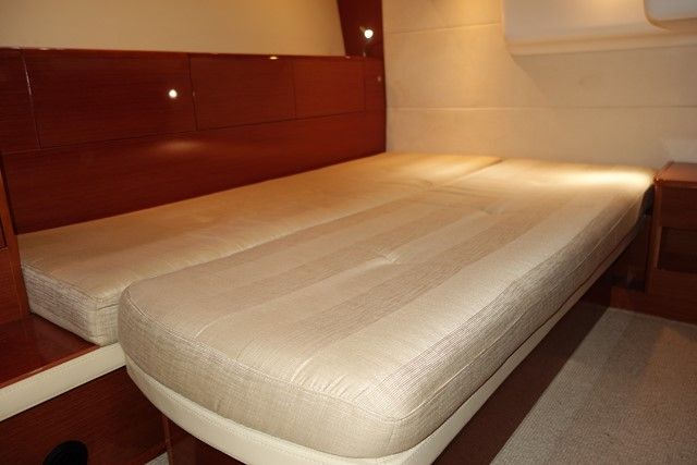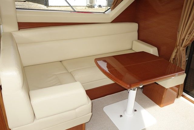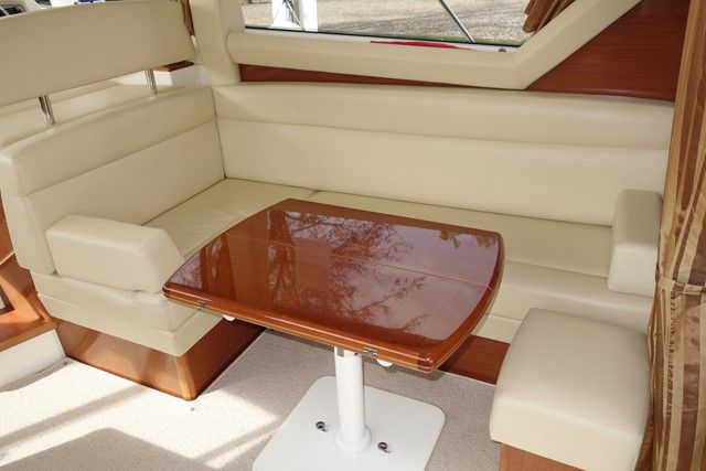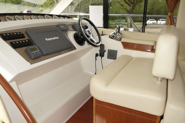 JEANNEAU PRESTIGE 39 – 2009 – Twin Cummins 380Hp Diesel engines. 6 berths with 2 heads to holding tank and 2 showers. Bowthruster, Generator, Air con, Warm air heating system, Trim tabs, Electric anchor winch, Teak flooring to cockpit, bathing platform and flybridge. Very well designed flybridge cruiser with an extremely light and airy saloon.