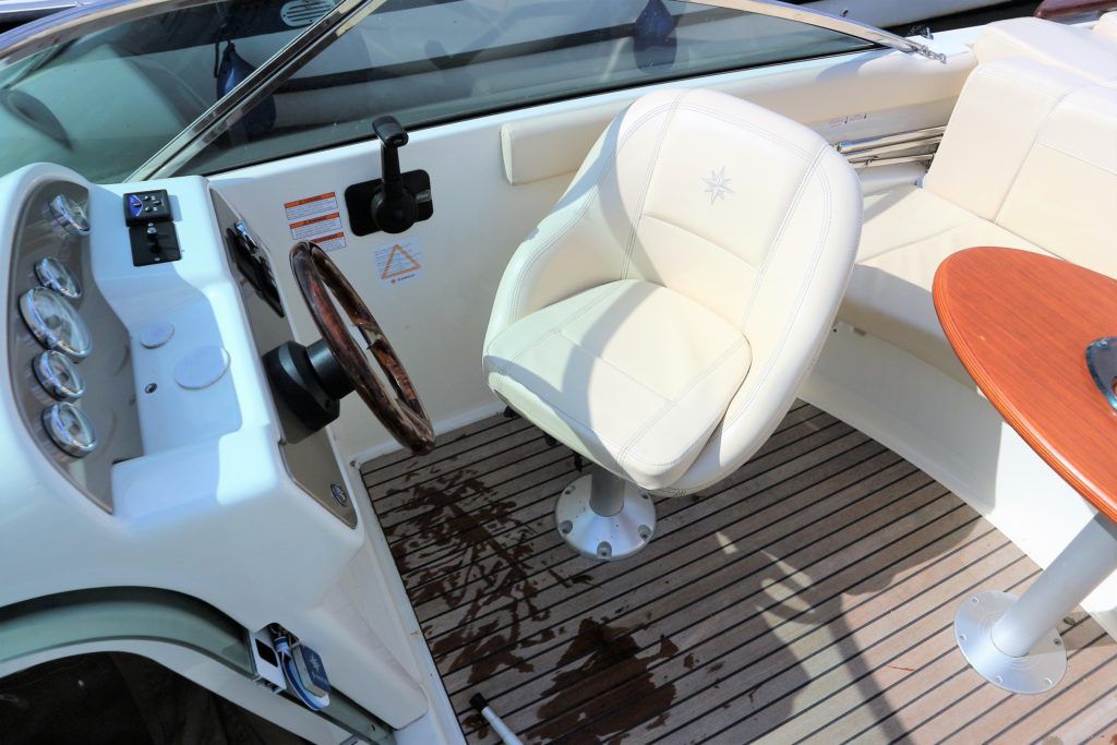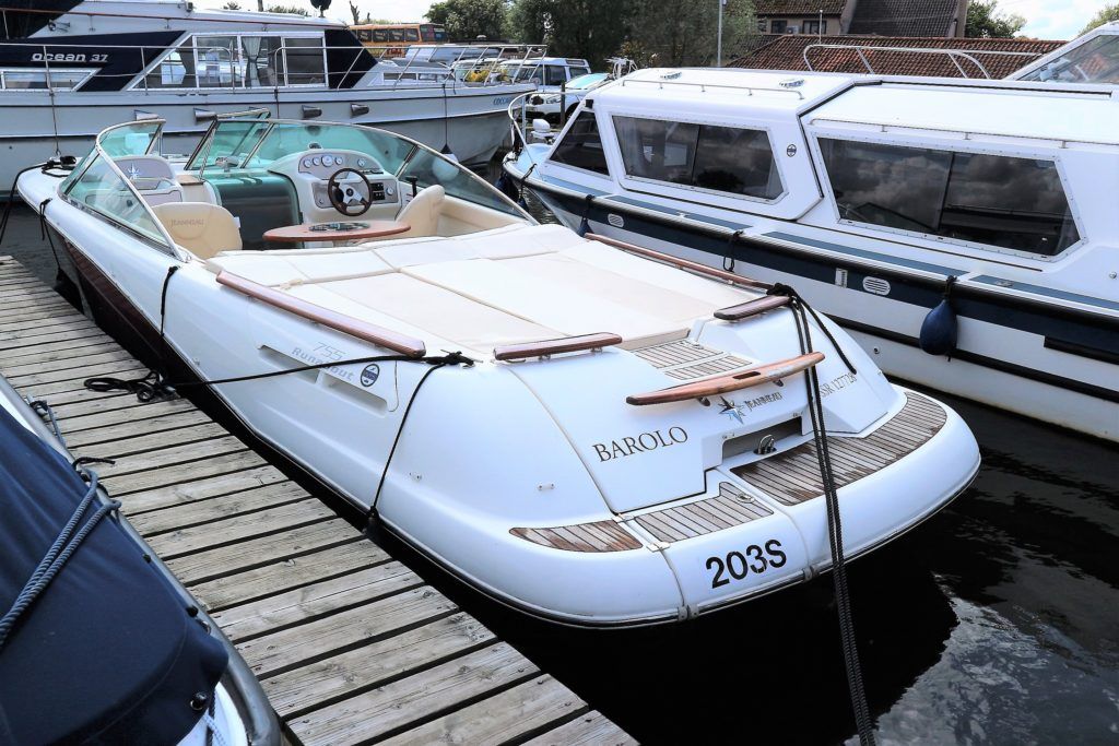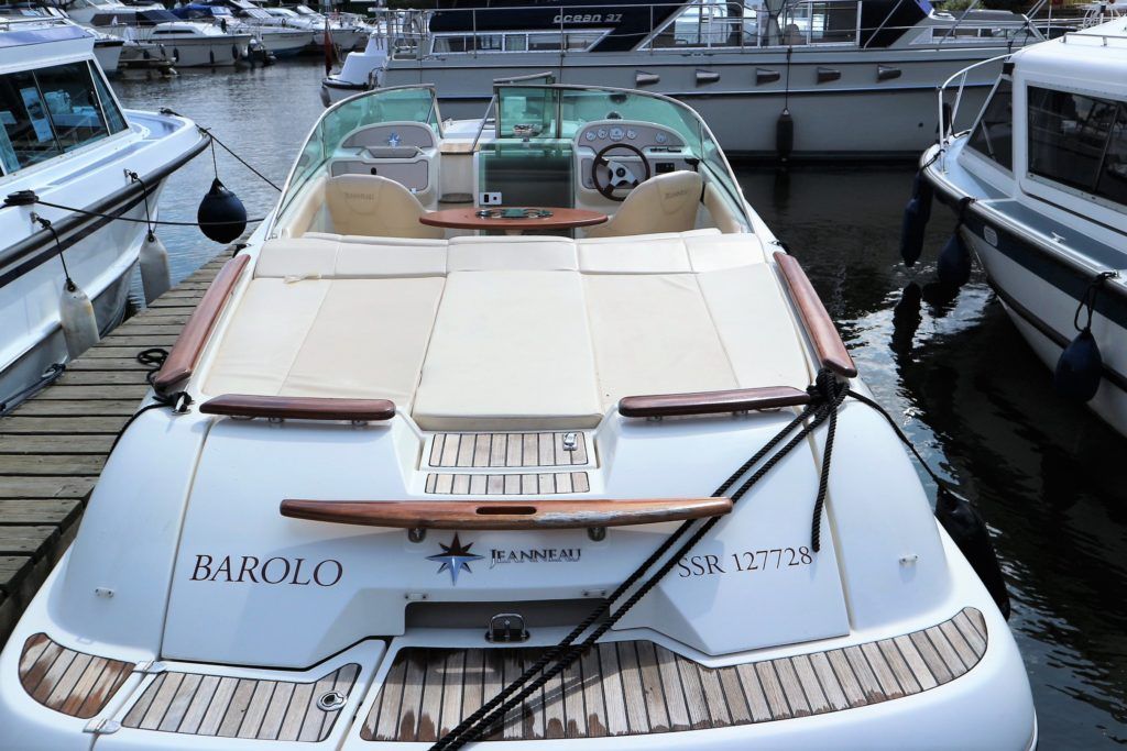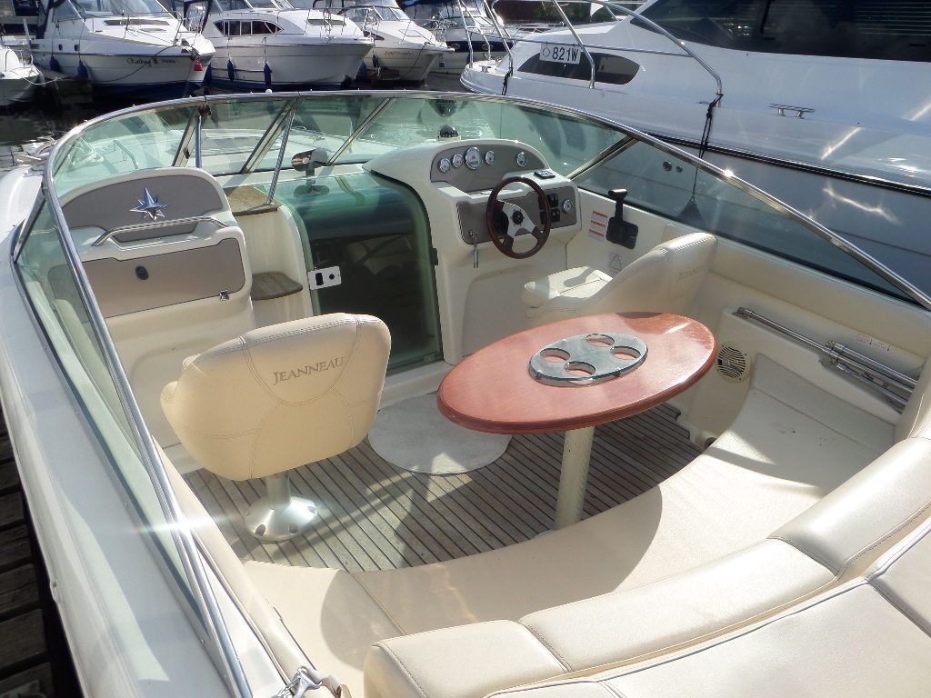 JEANNEAU 755 RUNABOUT – 2007 – Single Volvo 5.7 GXI DP 320hp Petrol Engine. 2 berth cuddy cabin, electric windlass, remote spot light, tonneau cover, bimini sunshade, large rear sunlounge area and comfortable cockpit seating. BSC 05/21. A real head turning sports cruiser with stunning looks, great performance and overnight capabilities.