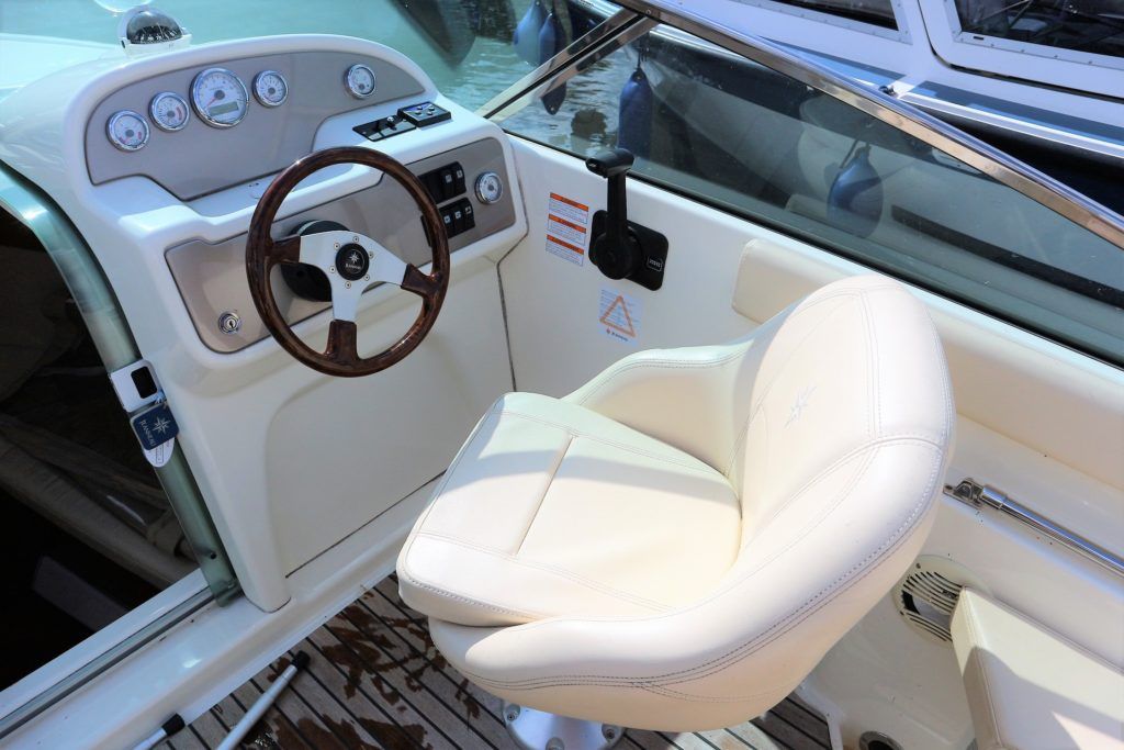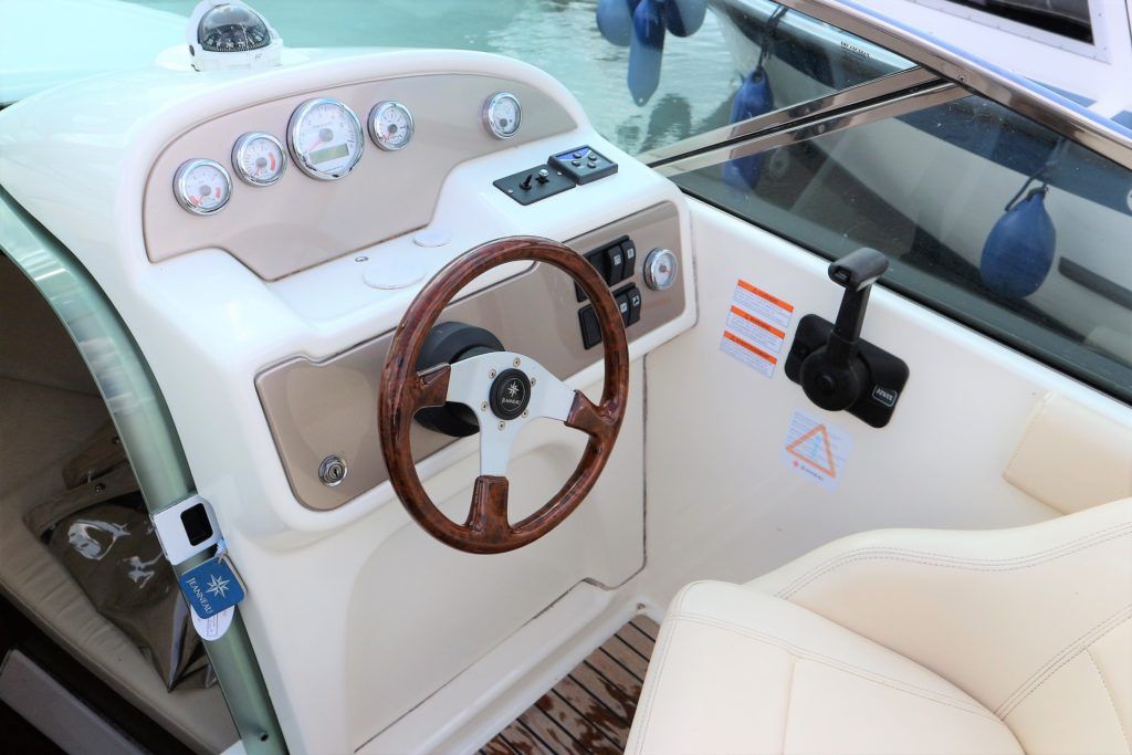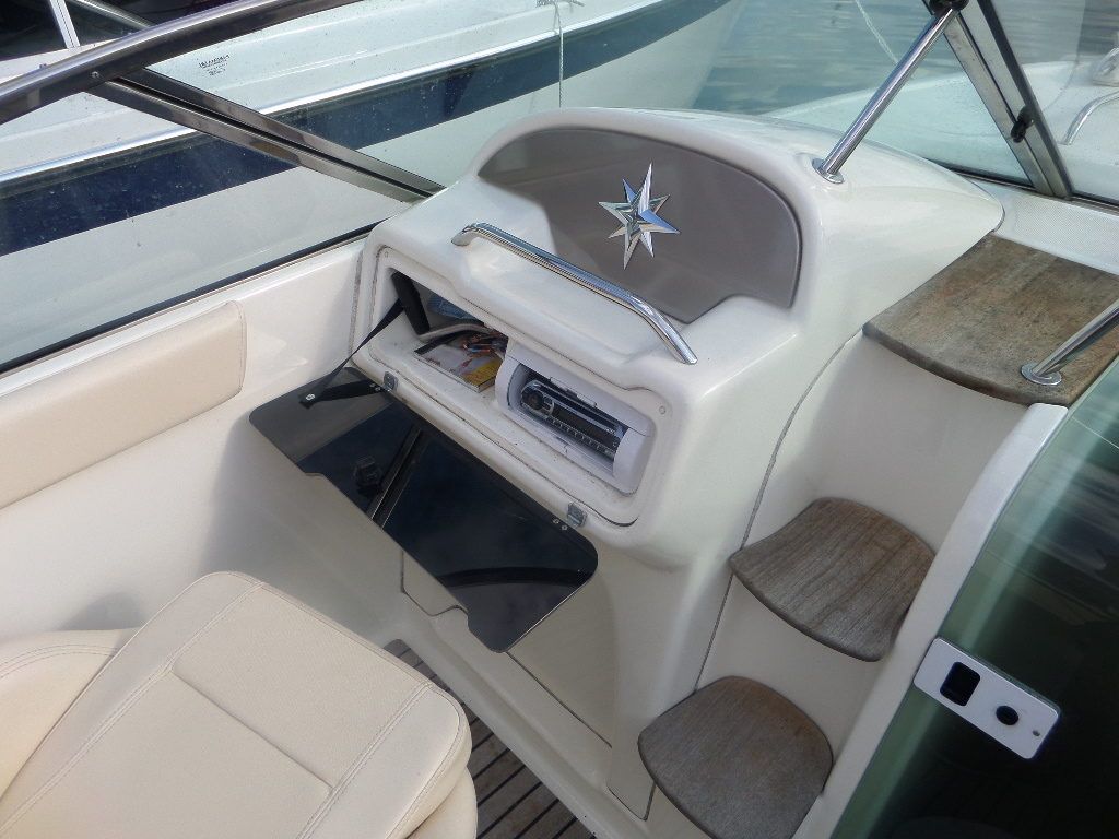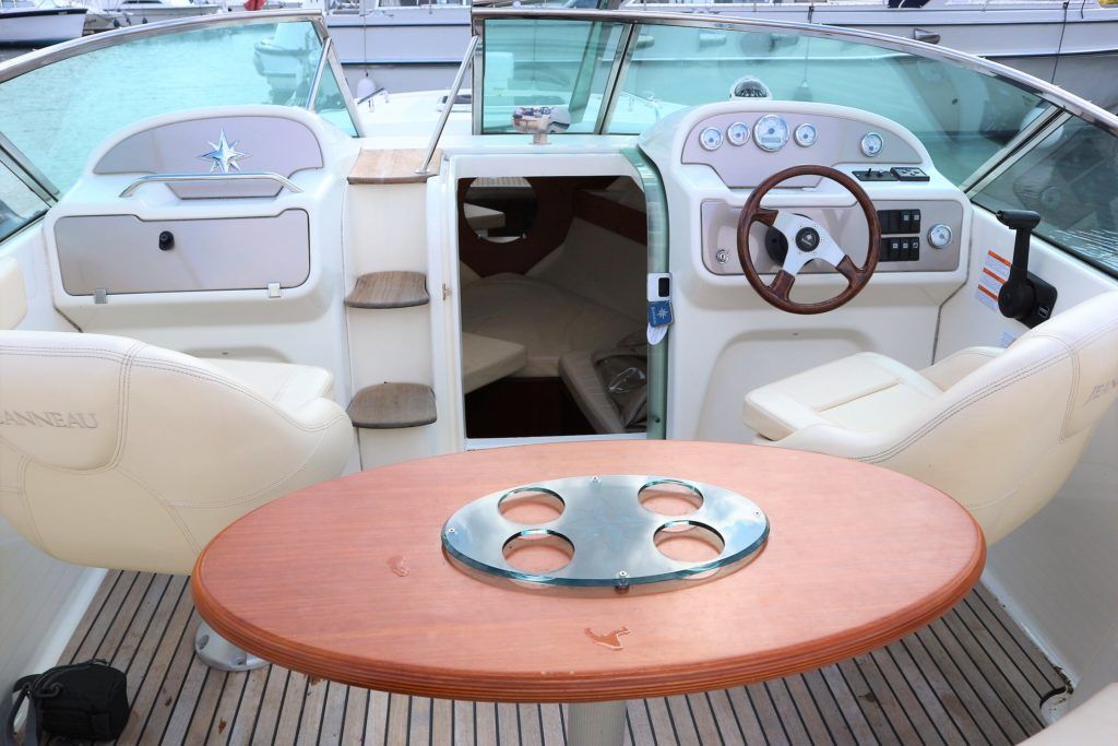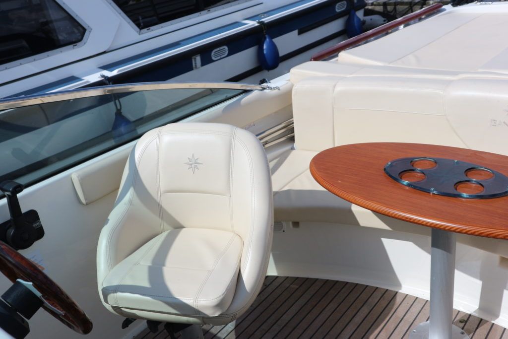 JEANNEAU 755 RUNABOUT – 2007 – Single Volvo 5.7 GXI DP 320hp Petrol Engine. 2 berth cuddy cabin, electric windlass, remote spot light, tonneau cover, bimini sunshade, large rear sunlounge area and comfortable cockpit seating. BSC 05/21. A real head turning sports cruiser with stunning looks, great performance and overnight capabilities.