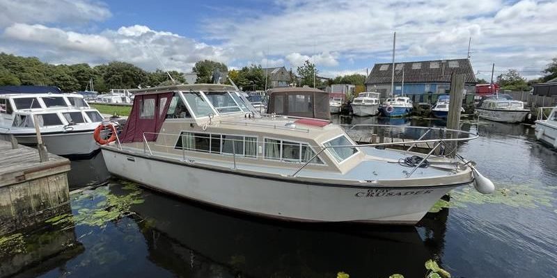 JGM Madeira 27 – 1975 – Powered by 2 x BMC 1.5 diesel engines through shafts. 4 berth accommodation in open plan cabin with 1 x toilet compartment. Specification to include shore power, Battery Charger, warm air heating, hot water system and navigational equipment. BSC valid until 06/2024. An ideal starter boat with a spacious cockpit for entertaining and a cosy well appointed interior.