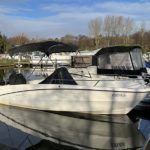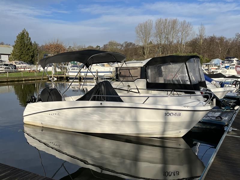 Karnic Smart 1-55 – Built 2016 & Commissioned 2019 – Powered by a Mercury F100 EFI 100hp petrol outboard engine. Sold with Extreme EXT1500 Trailer. A spacious open launch/sport fisher with cushioned cockpit seating and sun pad, bimini sunshade, Raymarine Axiom 9″ chart plotter, storage cover.