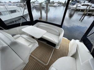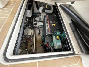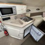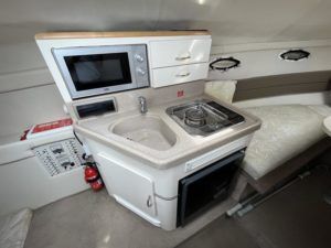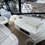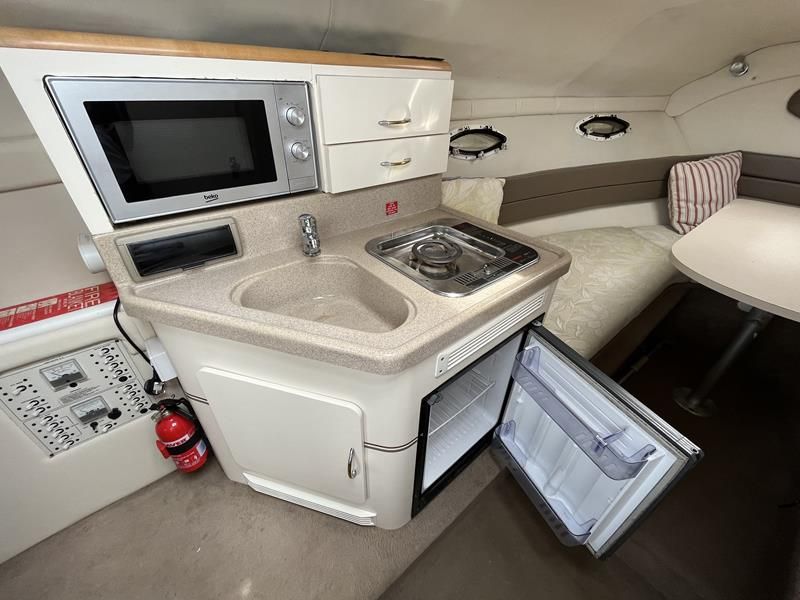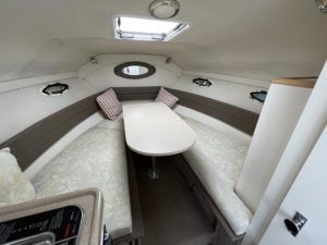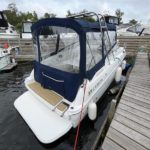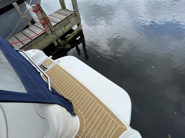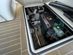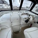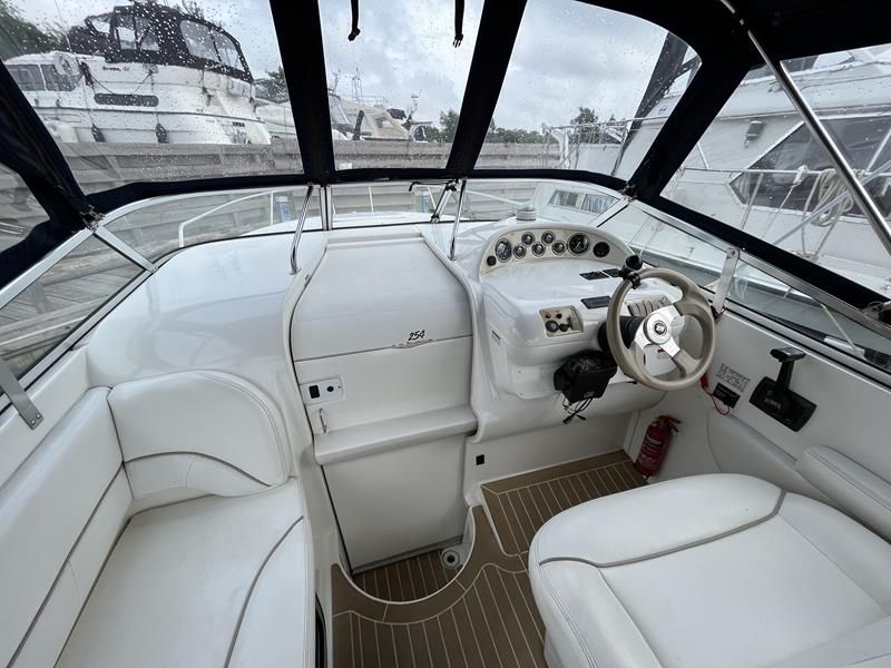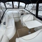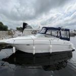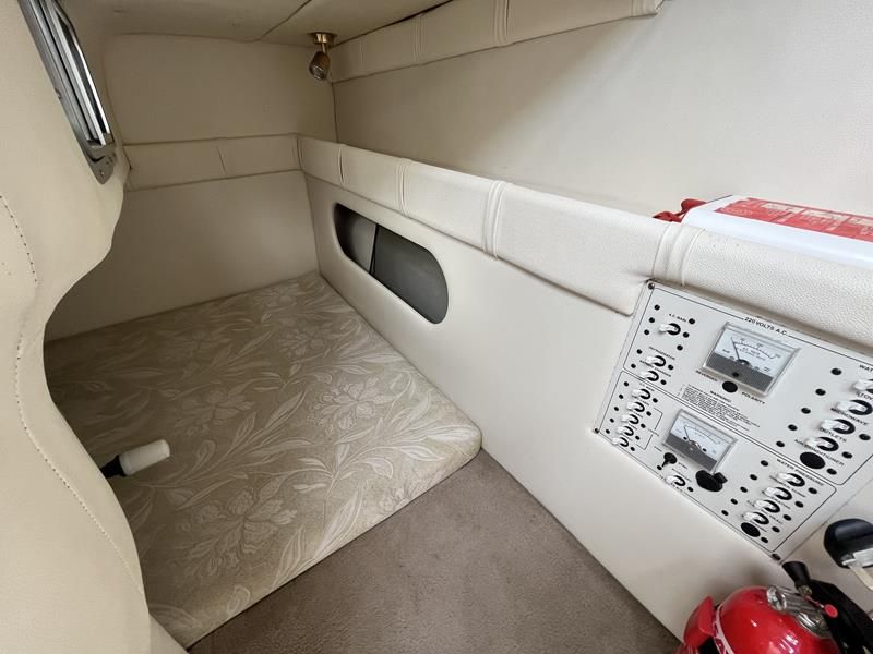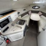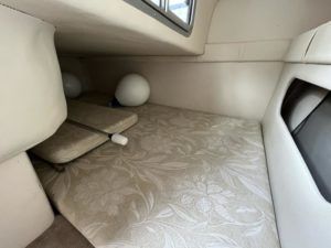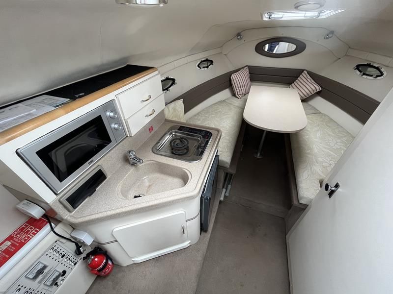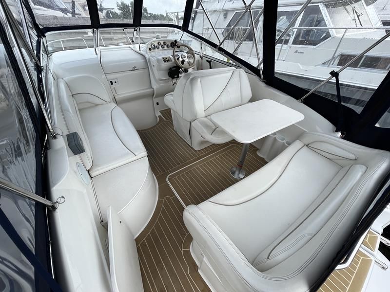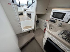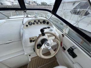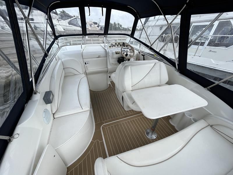 Larson 254 Cabrio – 2000 – Powered by a single Volvo KAD32 170hp Diesel engine. Up to 6 berth accommodation in cabin and occasional cockpit berth. Specification including shore power, battery charger, immersion, warm air heating, synthetic teak decking to cockpit, full folding canopy and arch, holding tank, BSC 05/26. A stylish and comfortable sports cruiser with a great sociable cockpit and the benefit of a low air draft and diesel economy.