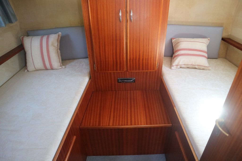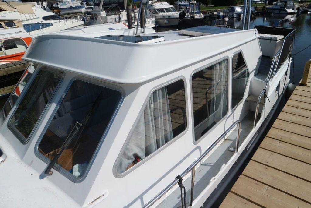 LINSSEN 30CS – Circa. 1992 – Powered by a single 32hp Vetus diesel engine. 6 berth accommodation with 1 toilet and shower facility. Specification to include; bowthruster, warm air heating, electric windlass and shore power supply with battery charger. BSC until 2021. Used across the Broads in her recent history. A sturdy steel cruiser, ideal for exploring the inland waterways.
