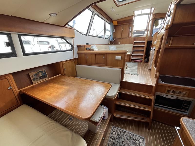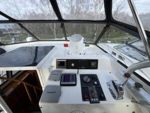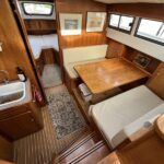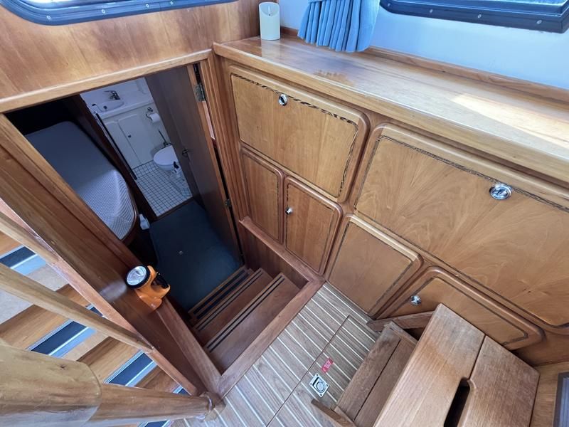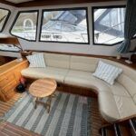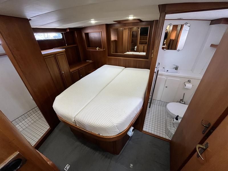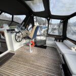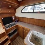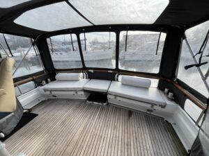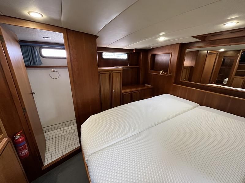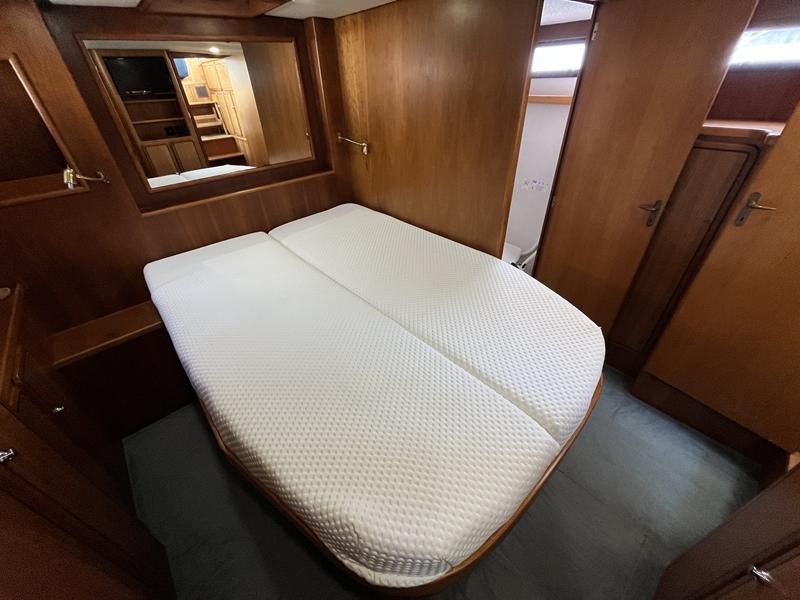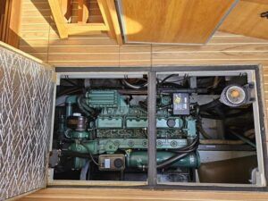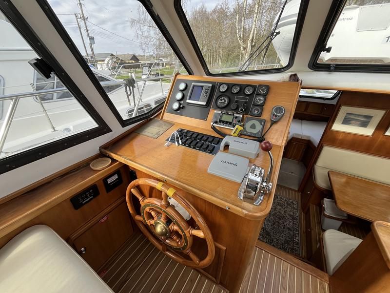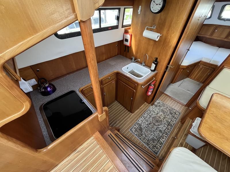 Linssen 41 SC – 1995 – Powered by a Volvo TAMD-41 H-A 145hp diesel engine. Cherry wood interior with 6 berth accommodation over 2 cabins and saloon with two en-suite toilet and shower facilities. Specification to include bow and stern thrusters with remote, Webasto warm air heating, shore power, battery charger, immersion heater, holding tank, Garmin GPS & VHF, teak decks, folding arch and screens for increased inland access. BSC07/2028. A spacious and well equipped cruiser, ideal for exploring the inland waterways or European canals.