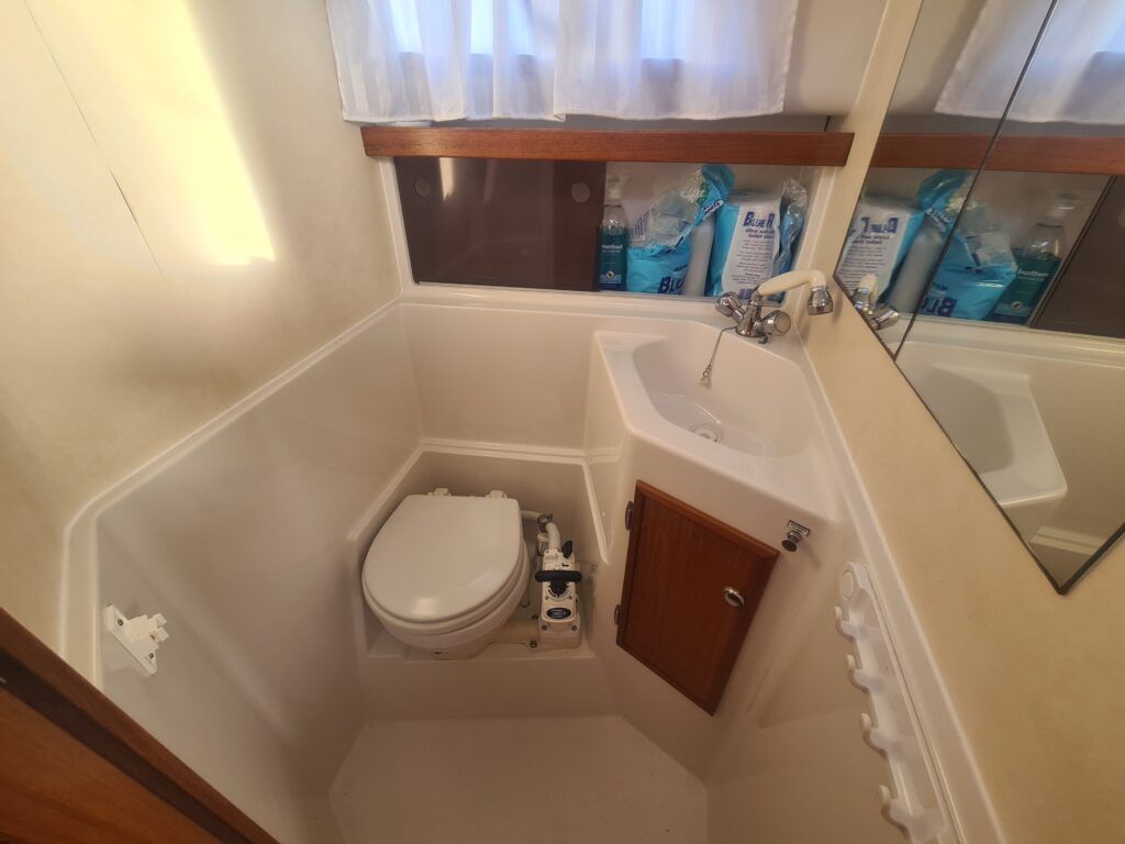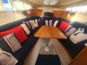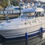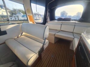 Marex 280 Holiday – 2005 – Yanmar 4LHA 184hp diesel engine on shaft, 5 berth accommodation, toilet and shower, bow thruster, eberspacher warm air heating, holding tank, shore power, trim tabs, anchor winch, fish finder, VHF, GPS, Chart Plotter. Scandinavian timber interior finish. A versatile cruiser featuring a cleverly designed layout that incorporates an aft cabin while still offering a generous amount of cockpit space.