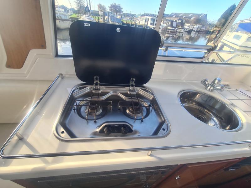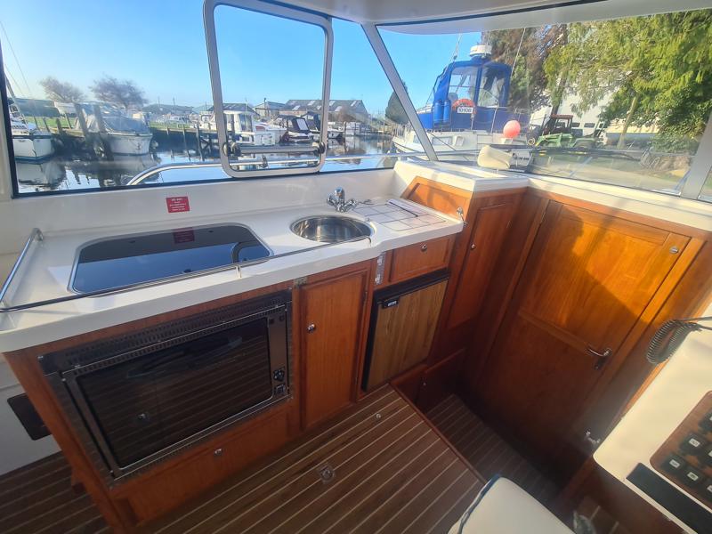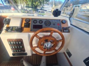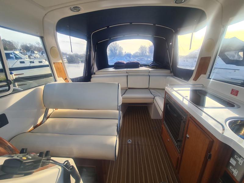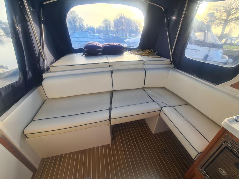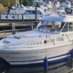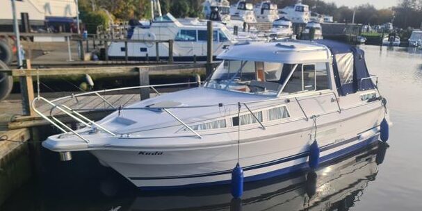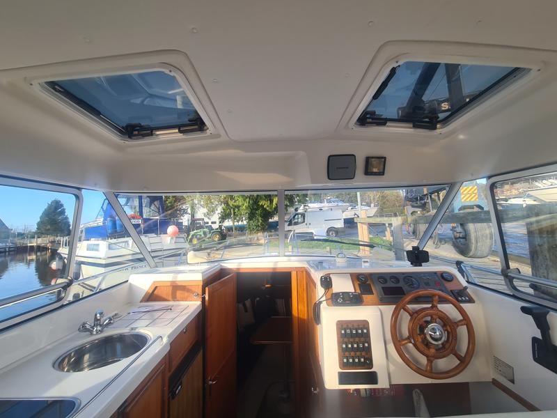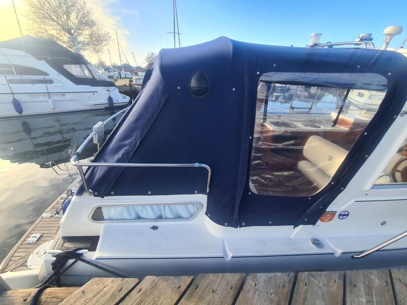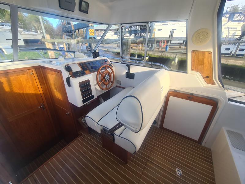 Marex 280 Holiday – 2005 – Yanmar 4LHA 184hp diesel engine on shaft. Up to 5 berth accommodation with 1 x toilet and shower. Specification including bow thruster, Eberspacher warm air heating, holding tank, shore power, trim tabs, anchor winch, fish finder, VHF, GPS, Chart Plotter. Antifouled Dec 2025, Engine serviced Dec 2025, Scandinavian timber interior finish. A versatile cruiser featuring a cleverly designed layout that incorporates an aft cabin while still offering a generous amount of cockpit space.