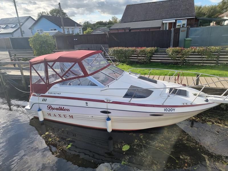 Maxum 2300 SCR – 1992 – Powered by a Mercruiser 4.3LX V6 220hp Petrol engine through Sterndrive. 4 berth accommodation with 1 x toilet/shower compartment. Galley with fridge, sink, single burner hob. Specification including shore power, battery charger, immersion heater, full folding canopy, large cockpit with cushioned seating, BSC 06/25. An attractive sports cruiser with lively performance, offering overnight accommodation and plenty of cockpit space for day cruising/entertaining. NYA Stock – As Traded in.