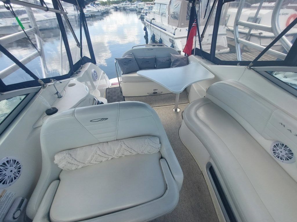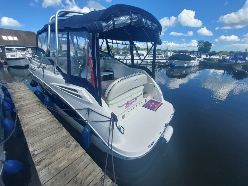 Maxum 2600 SE – 2007 – Powered by a single Mercruiser 350 Magnum 300hp 5.7ltr V8 petrol engine through a sterndrive. 4 berth accommodation with single toilet/shower. Specification to include; vetus bow-thruster, holding tank, shore power, folding radar arch, VHF radio, chart plotter, recent engine/leg service. “Ohana” is a boat with a huge amount of flexible, socialising space, perfect for enjoying inland or coastal waters. BSC 25/03/2027.