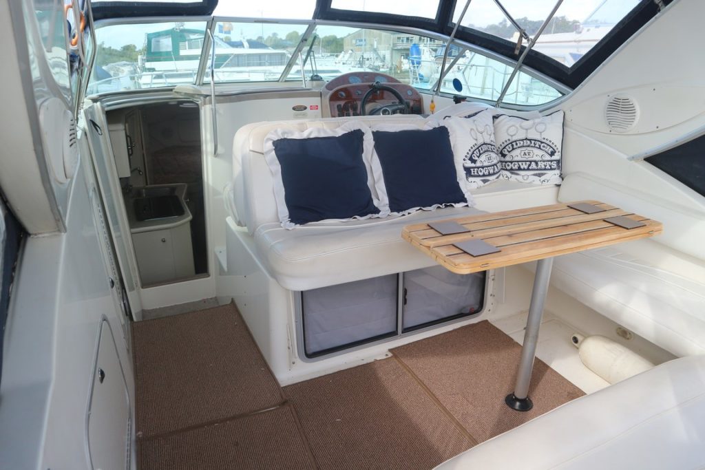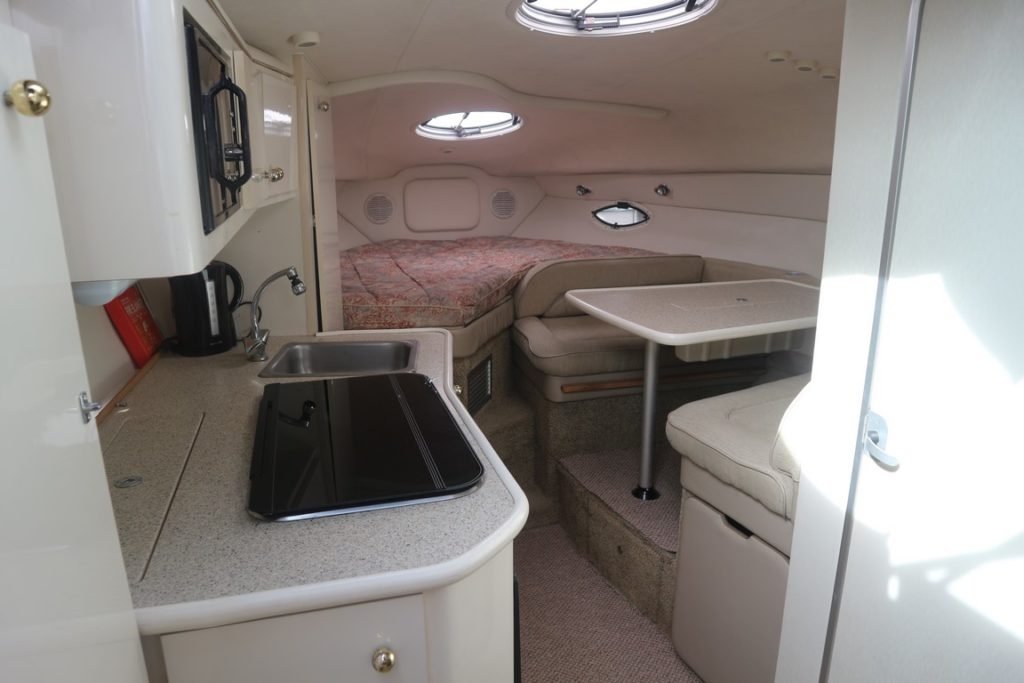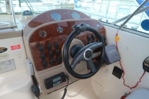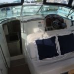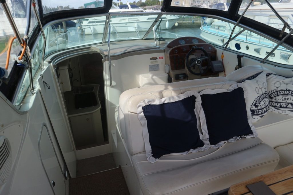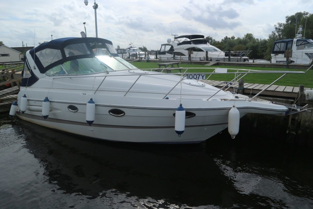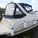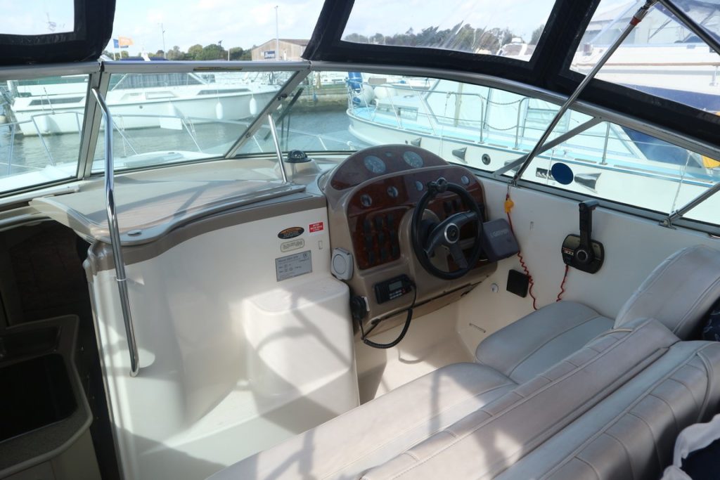 MAXUM 2800 SCR – 2000 – Powered by a single Mercruiser 7.4 MPI 310hp petrol. 6 berth accommodation with one toilet and one shower. Specification to include; Holding tank, trim tabs, GPS and shore power supply with battery charger and immersion. Extended bathing platform. Engine service and antifoul 2017. A stylish sports cruiser, well kept by current owners and presented in good overall order.