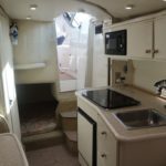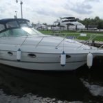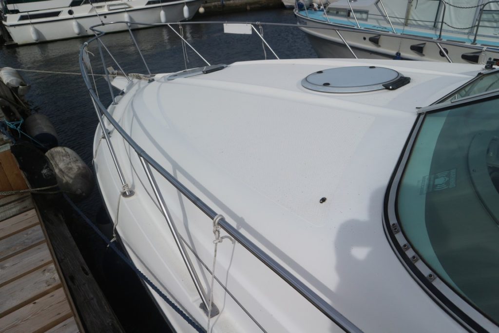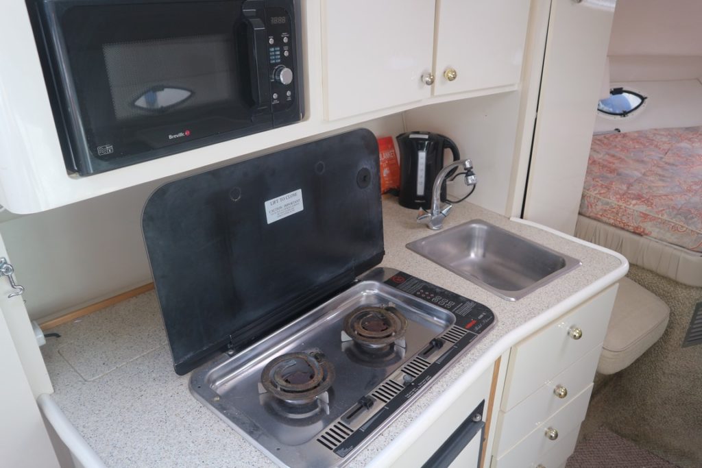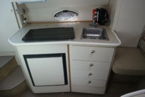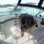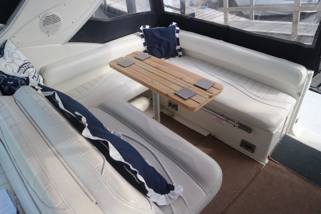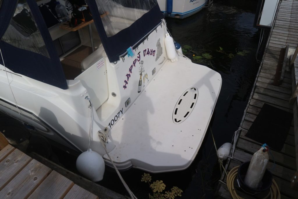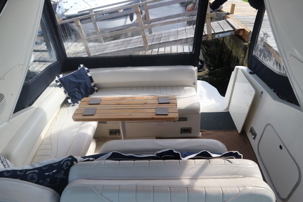 MAXUM 2800 SCR – 2000 – Powered by a single Mercruiser 7.4 MPI 310hp petrol. 6 berth accommodation with one toilet and one shower. Specification to include; Holding tank, trim tabs, GPS and shore power supply with battery charger and immersion. Extended bathing platform. Engine service and antifoul 2017. A stylish sports cruiser, well kept by current owners and presented in good overall order.