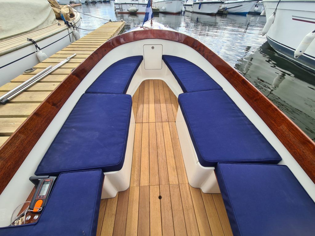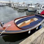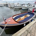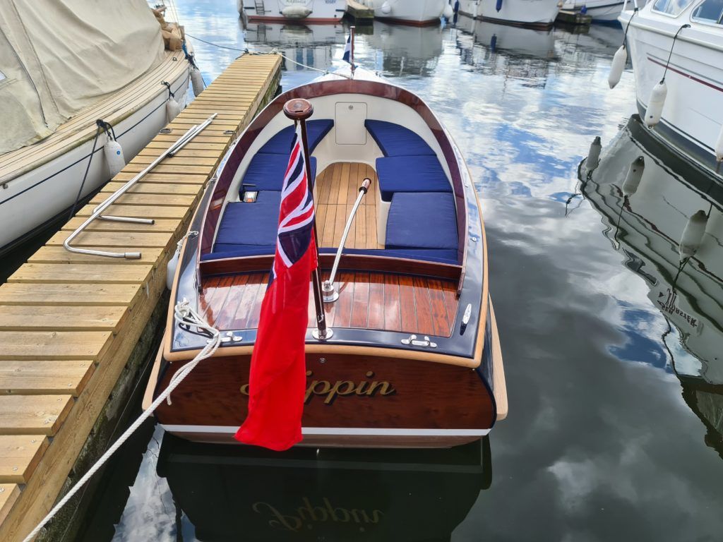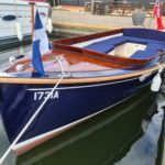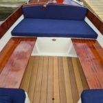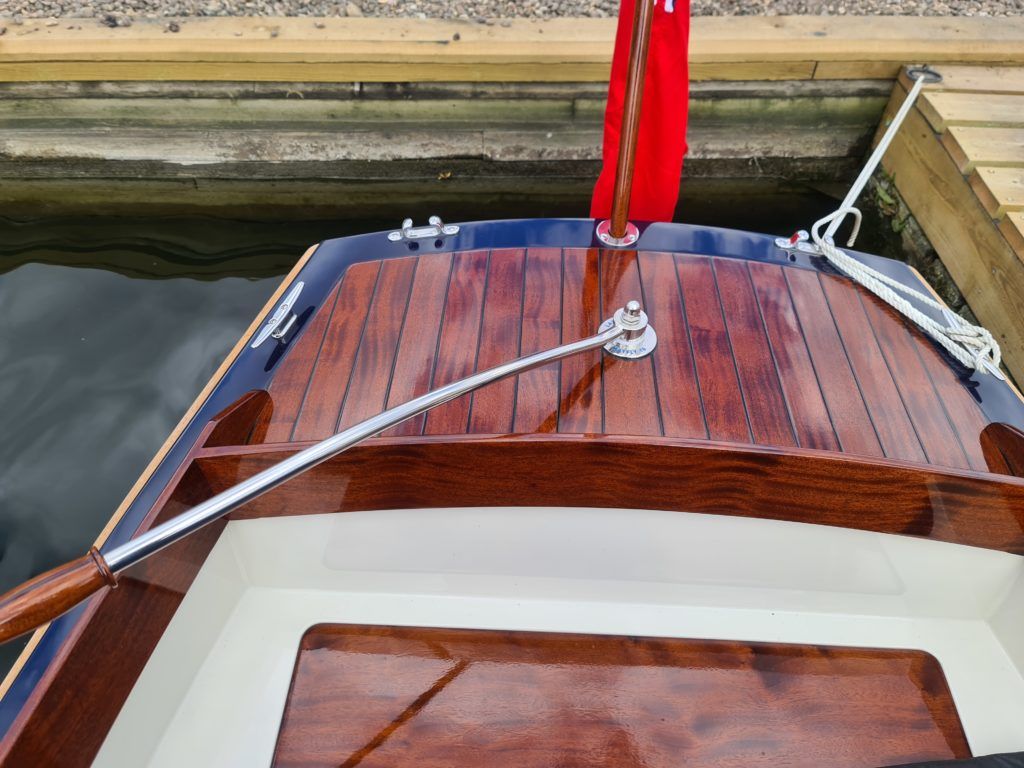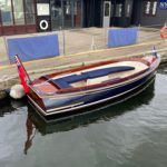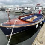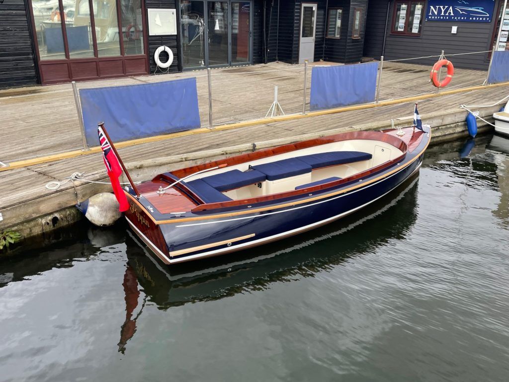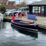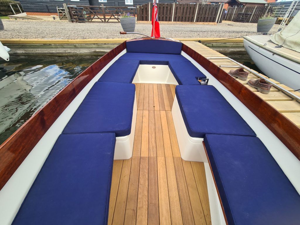MAYFLY 16 ELECTRIC LAUNCH – Built 2021 by EC Landamore, with a 2kw electric motor only run 3 hours from new, tiller steering, batteries, onboard charger, cushioned seating, chrome deck fittings, 12v horn and bilge pump. Beautiful traditional looking launch handcrafted mahogany decks perfect for day cruising on inland waterways.