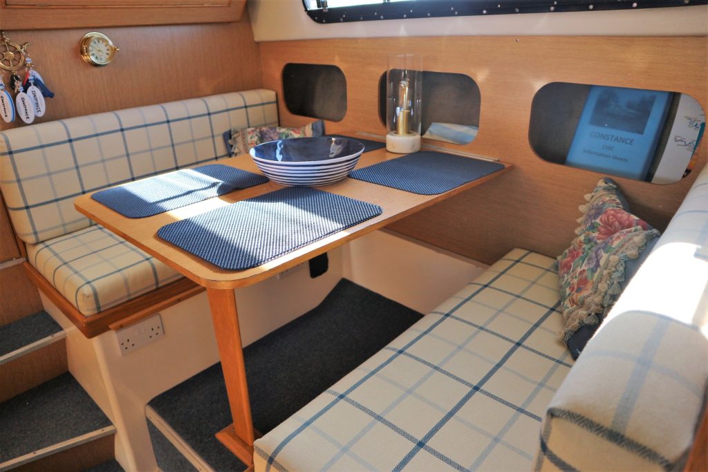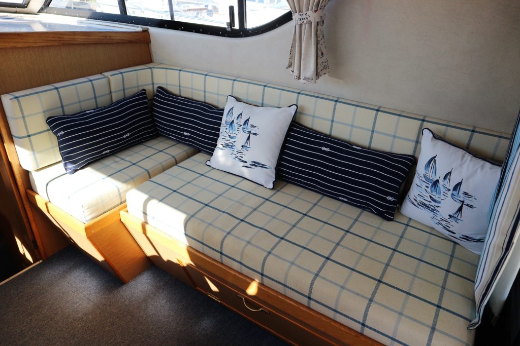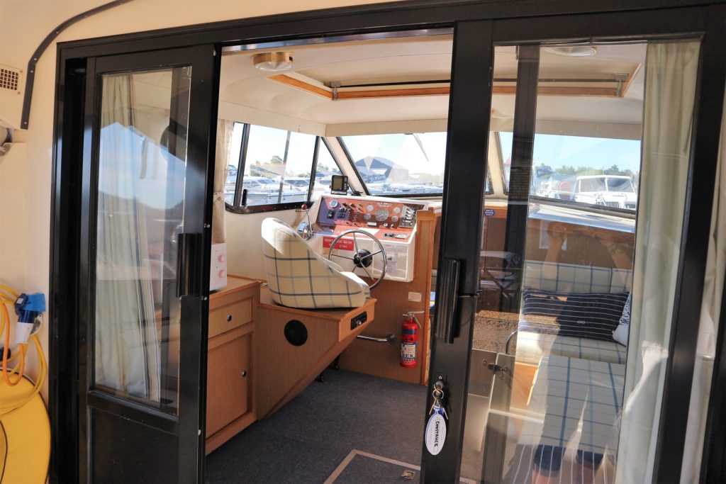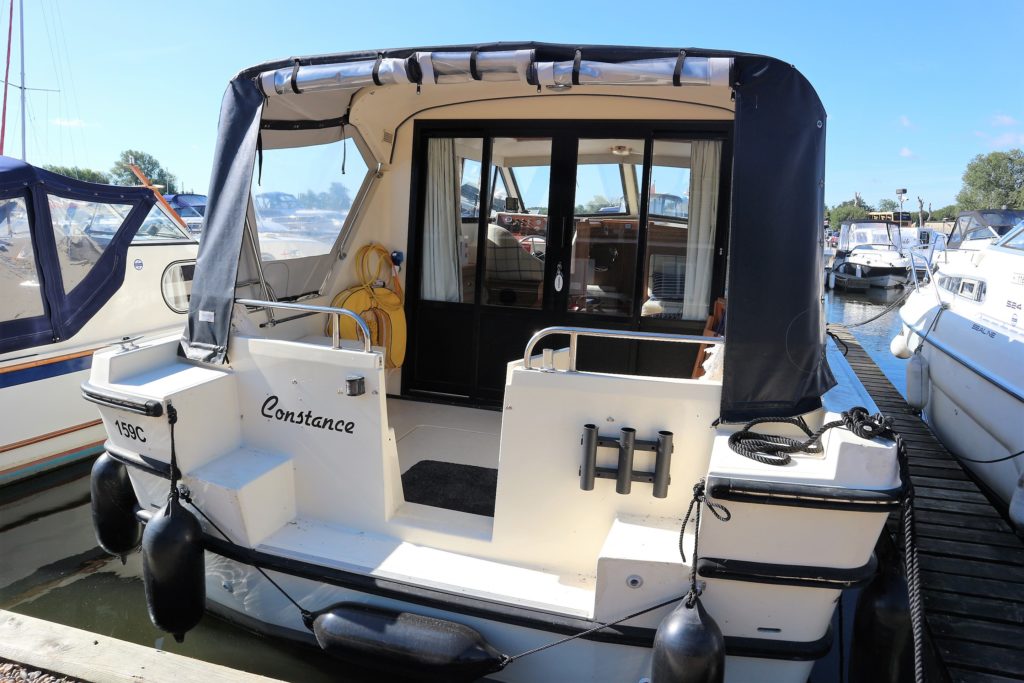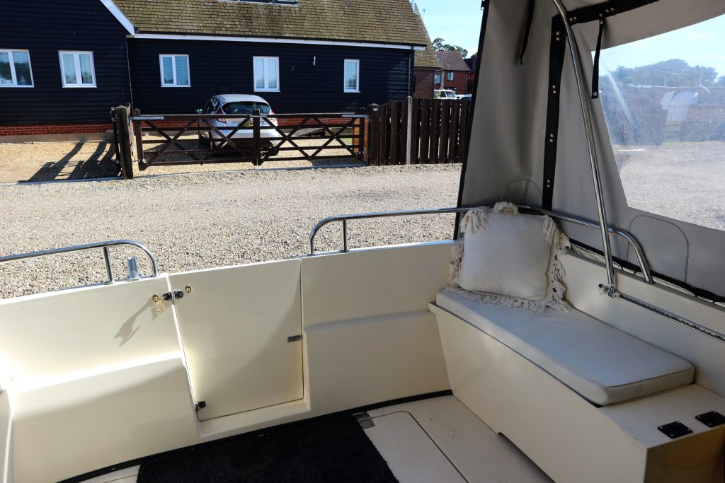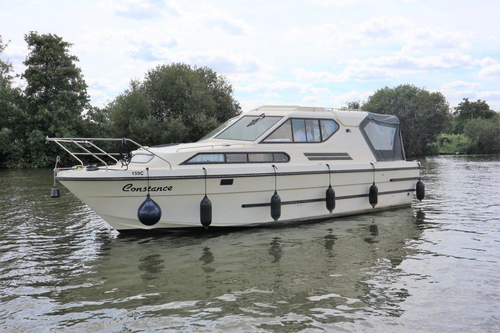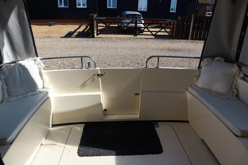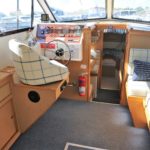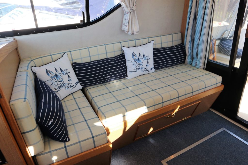 MOORE & Co. PRINCESS 30 DS – 1994 – Powered by a single Nanni 43hp diesel engine. 4 berth accommodation plus additional small double in the saloon. 1 electric toilet/shower compartment. Specification to include bow thruster, electric windlass, warm air heating, shore power, battery charger and more. BSC 03/19. Having undergone much recent improvement this is a tidy well equipped sedan style river cruiser.