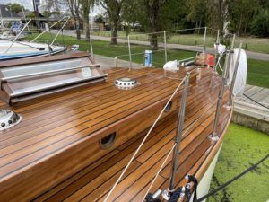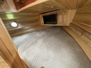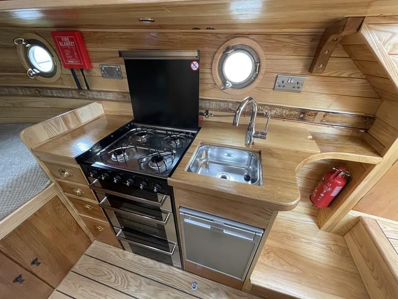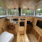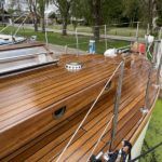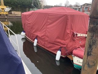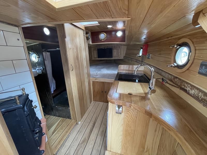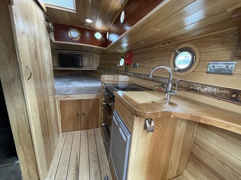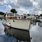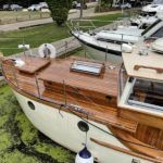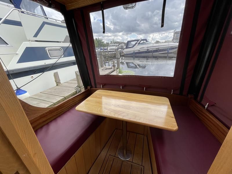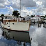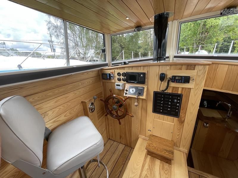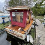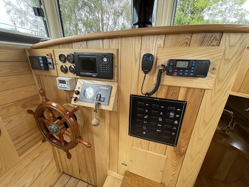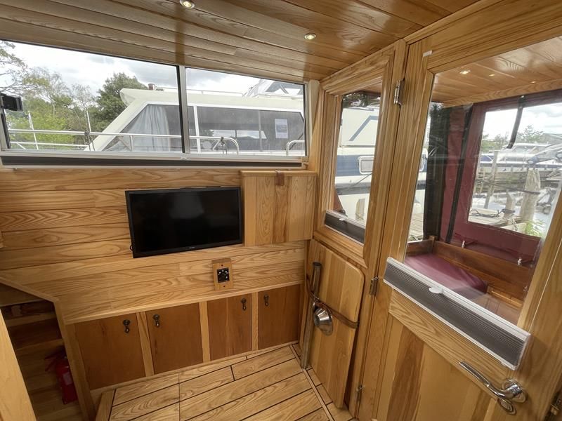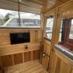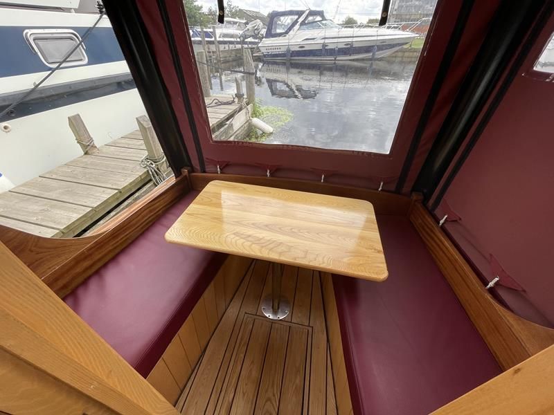 Thornycroft Boat Class – Circa 1930s – Powered by a Nanni N4.38 38hp diesel engine through shaft commissioned 2021 with 65 hours use. 2 + 2 berth accommodation with 1 x toilet/shower compartment. Galley with 4 burner gas hob, oven and grill, fridge, sink, and oak surfaces. Specification including shore power, battery charger, immersion, inverter, electric toilet, BSC 07/25, bespoke full cover, new upholsteries and canopy. A unique motor cruiser which has undergone a full restoration under her current ownership. Must be viewed to appreciate the quality of the fit out and finish.