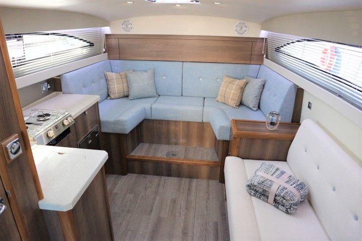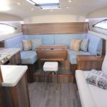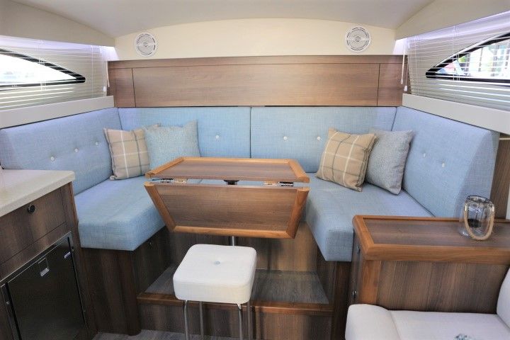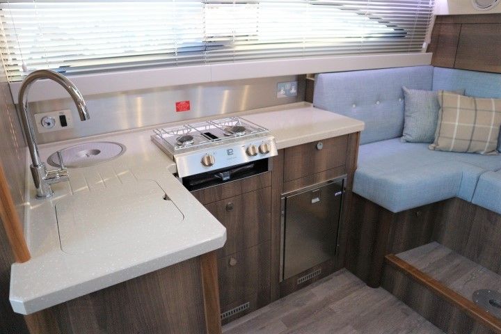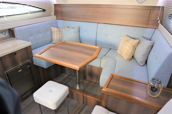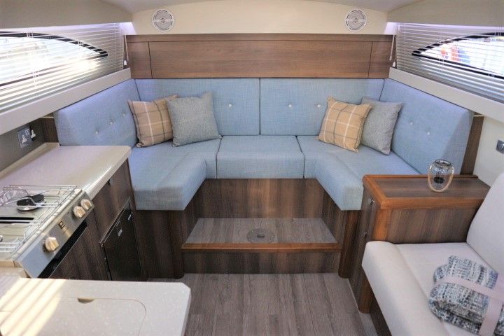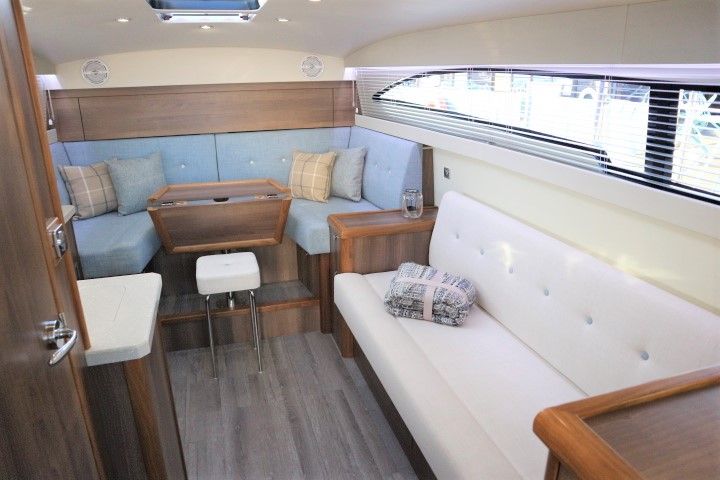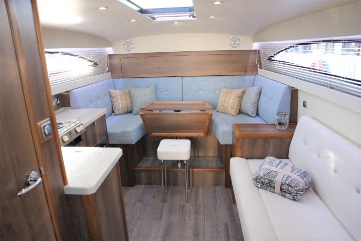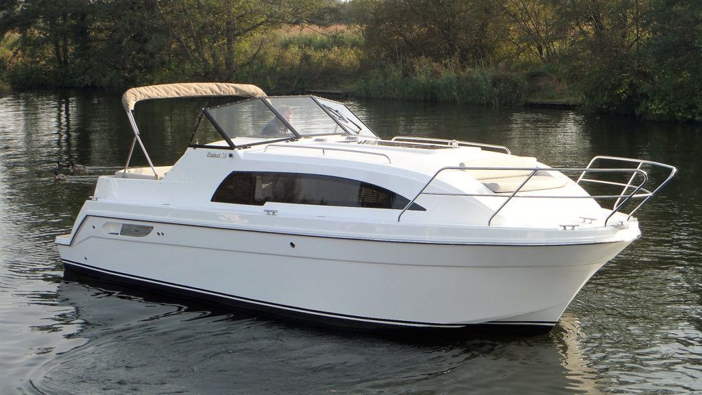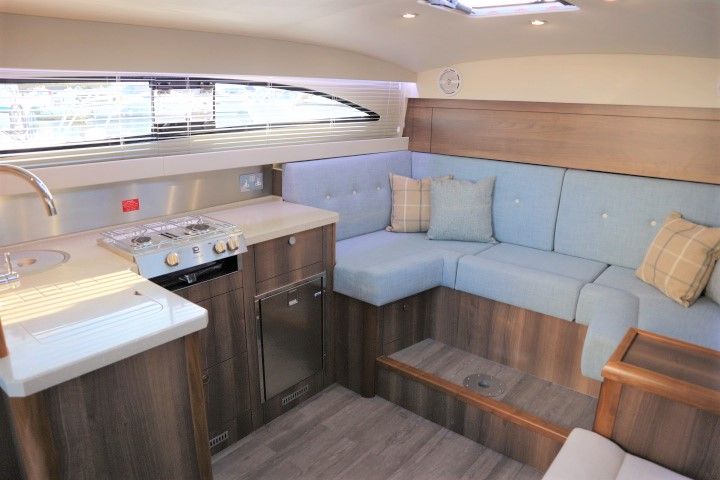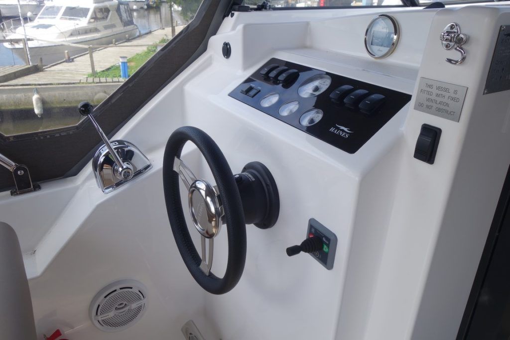 HAINES 26 – 2017 – Powered by a single 38hp Nanni diesel engine. Open plan cabin layout, accommodating up to 4 with a toilet and shower. Finished beautifully in walnut to Haines’ usual high standard, Amtico flooring to complete the contemporary look. Specification to include; bowthruster, Victron battery charger/inverter unit, warm air heating, electric toilet to holding tank, immersion and much more! A stylish and sociable design, perfect for cruising the inland waterways.