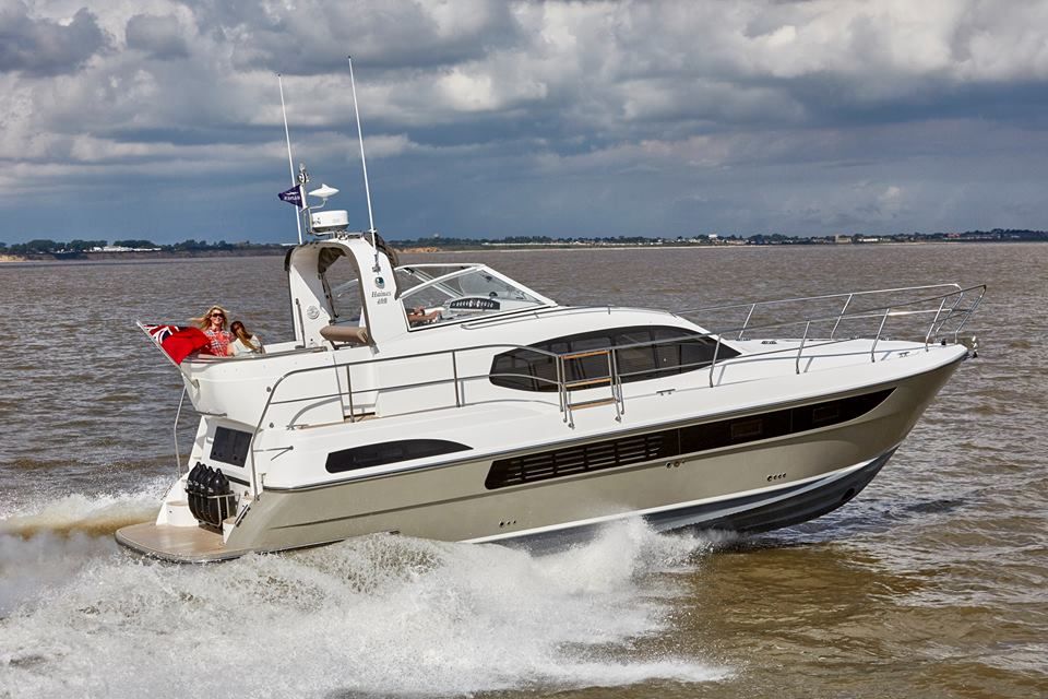 NEW HAINES 400 – Built to order – The Flagship of the Haines fleet offers style, comfort & practicality with the choice of both semi displacement or full planing hulls. Bespoke built, Incorporating the largest saloon in its class, 2 spacious cabins with island double berths and en-suites. Customisation is at the heart of the Haines build process with a vast list of specification & finishing options available. For More Information Click Here. Prices starting from £510,930 inc VAT.