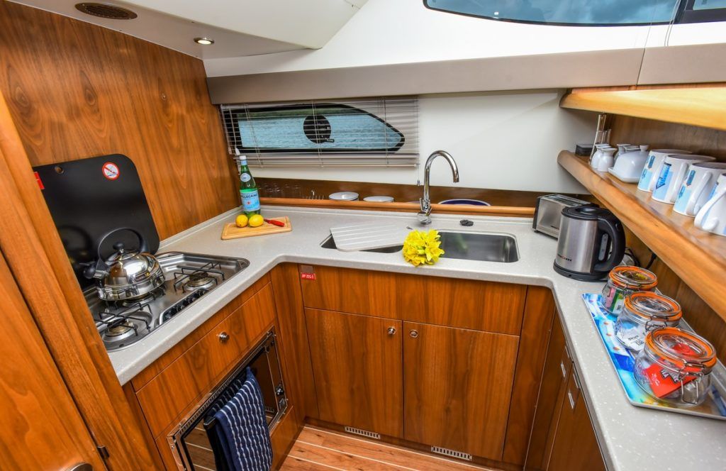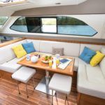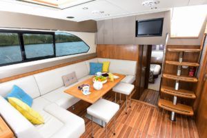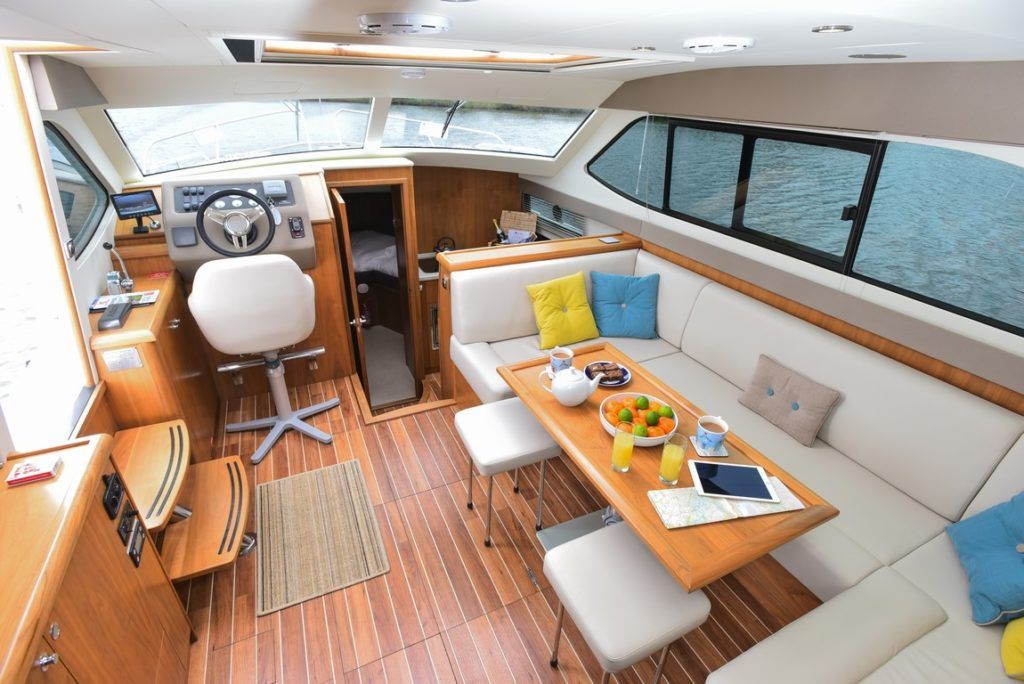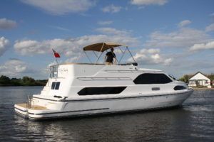 NEW HAINES 42 ELEGANCE – Built to Order – The Haines 42 Elegance offers unrivalled space for an inland/estuary cruiser both inside and out. With large en-suite cabins and a generous open plan saloon / galley area which make the boat well suited to families and groups wanting extended stays aboard. The larger upper flybridge offer panoramic views and is ideal for entertaining with its wet bar, fridge & comfortable seating for at least eight. Prices starting from £447,000.00 inc VAT.