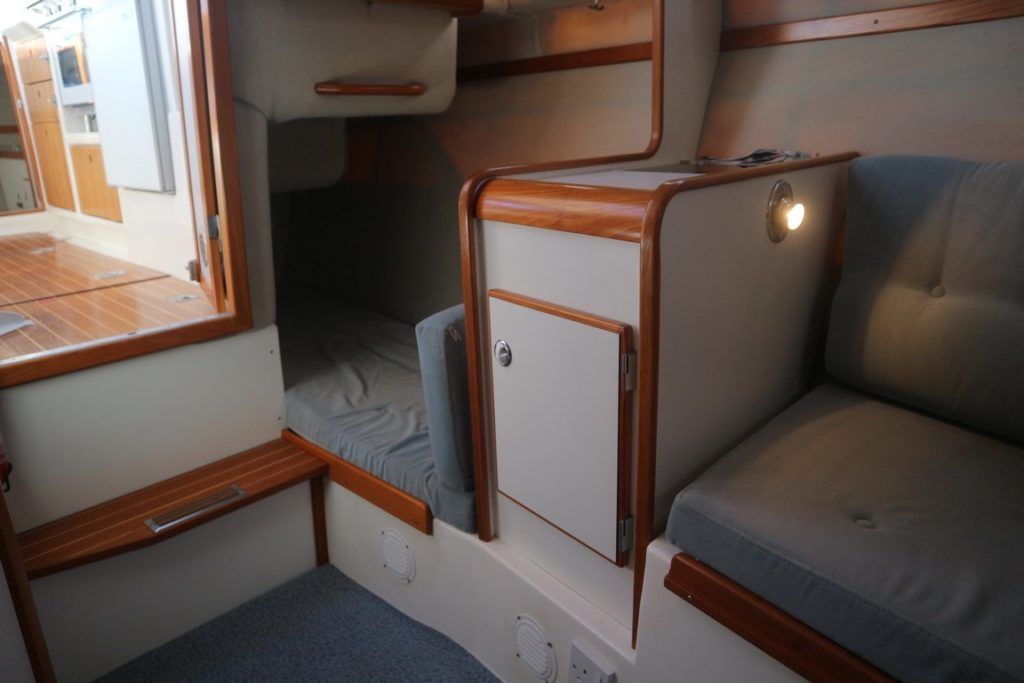 NIMBUS 27 FAMILIA – 1990 – Powered by a single Volvo TAMD31B 130hp diesel engine. 5 berth accommodation with 1 toilet facility. Specification to include, holding tank, bow thruster, electric windlass, a range of navigation equipment and shore power supply with battery charger. Engine service and antifoul 2017. A very practical design offering maximum space for a 27 foot cruiser. NYA STOCK – 3 month major mechanical fault warranty for engine and gearbox.