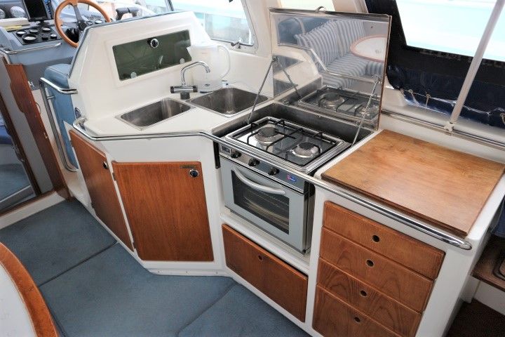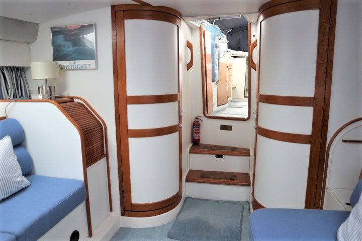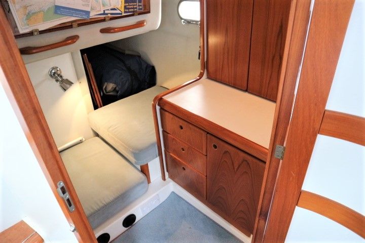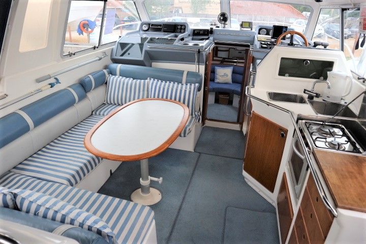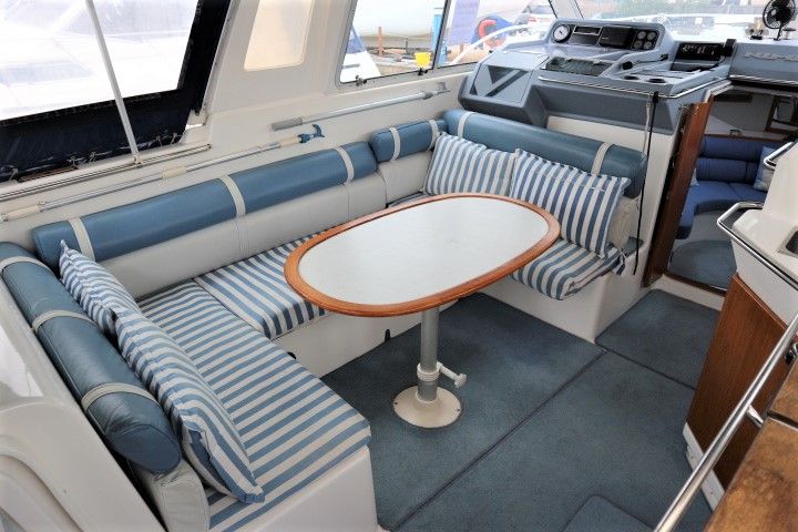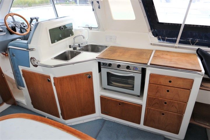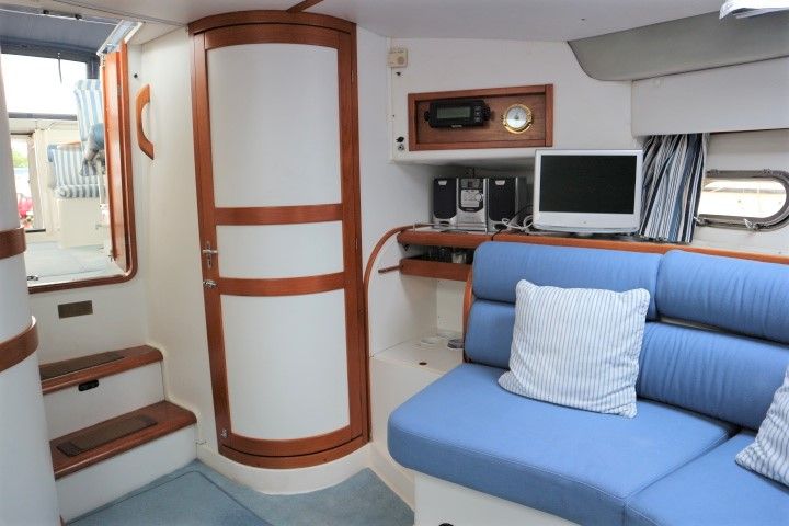 NIMBUS 3400 – 1989 with 2 x Volvo TAMD 41A diesel engines, 6 berth accommodation, 2 x toilets to holding tank & 1 shower, galley. Shore power, battery charger, immersion heater, warm air heating, electric windlass, BSC 2020, 2 x VHF radio's, GPS, winter cover, new anodes and antifouled 2017. A spacious sea cruiser with clever accommodation for a 34ft craft.