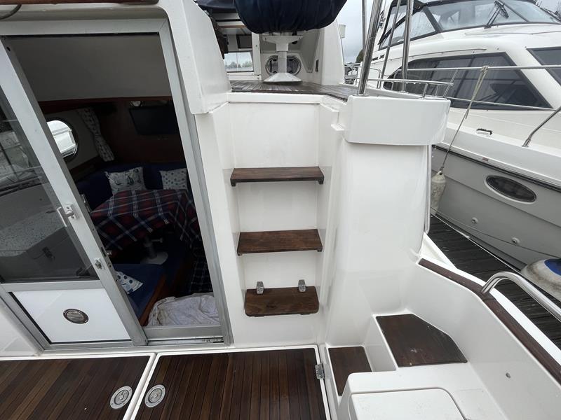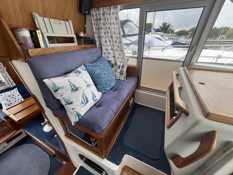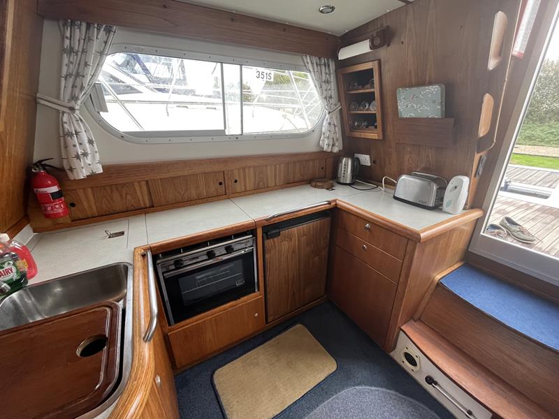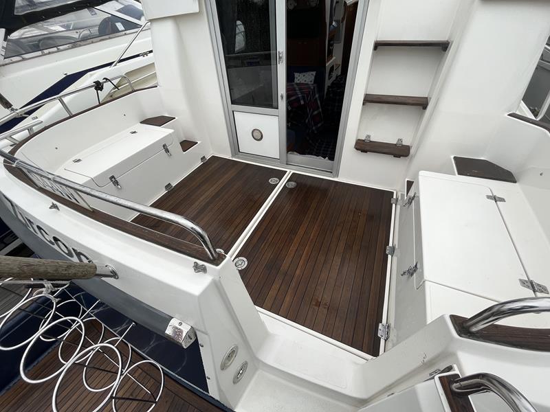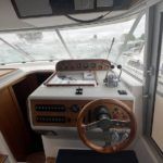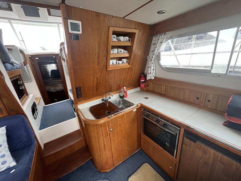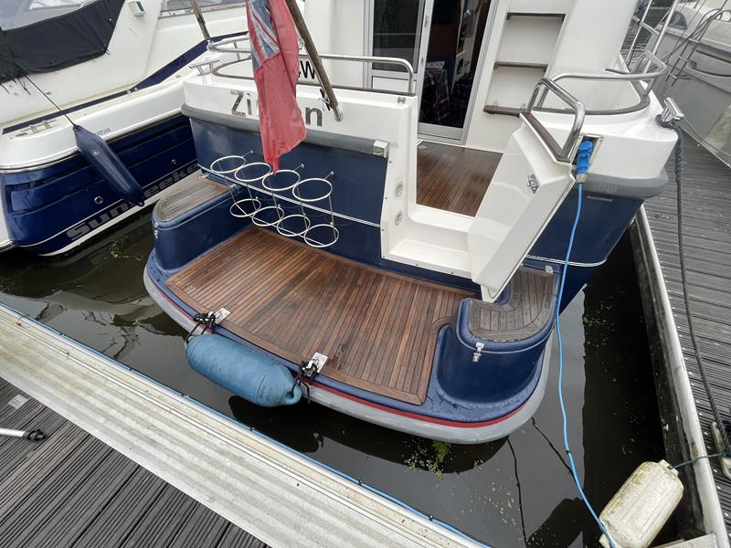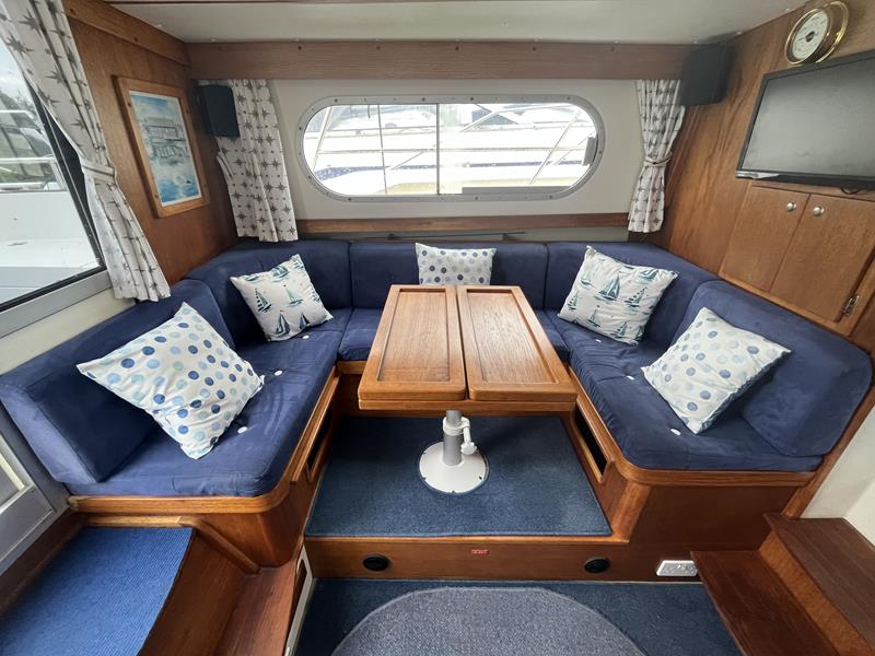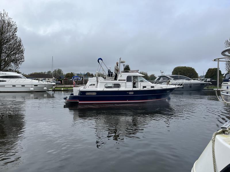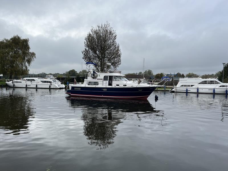 NIMBUS 370 – 1999 – 2 x Yanmar 230HP diesel engines through shafts. 6 berths in 3 cabins with a roomy toilet and shower compartment. Specificaiton to include; Bow and stern thrusters with remote, navy hull, Webasto diesel heating, trim tabs, shore power, teak interior, battery charger, immersion, holding tank, autopilot, radar, hinged mast. Recently serviced and antifouled 2023, New propellers 2023. A well-presented example of these ever-popular, fast semi-displacement cruisers. Early viewing is recommended.