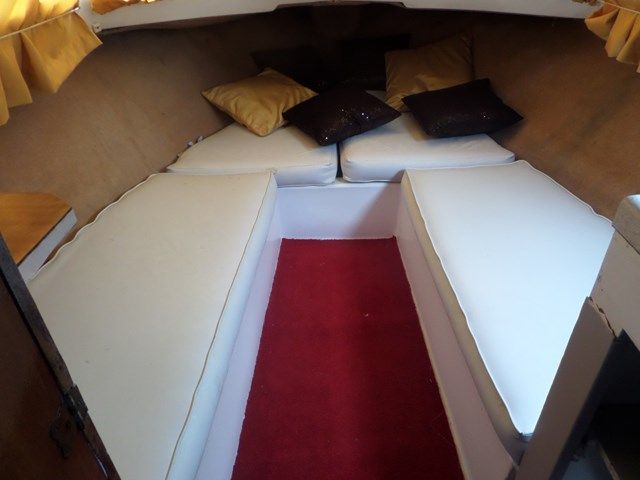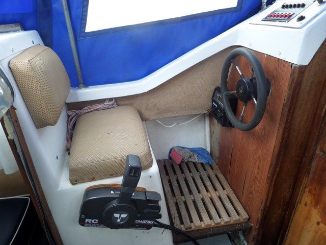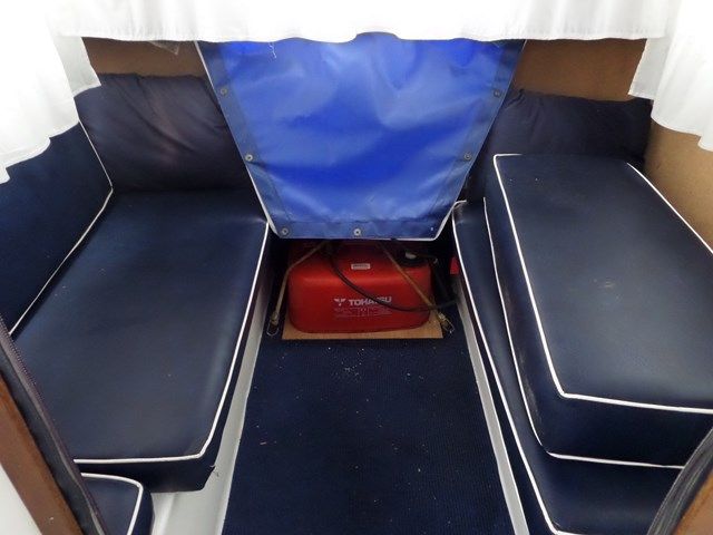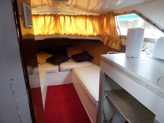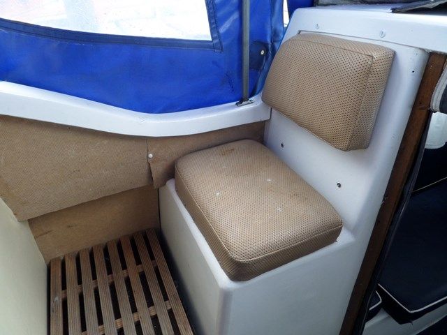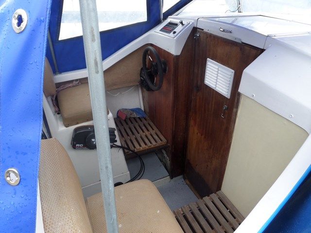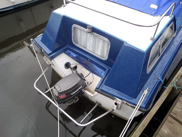 NORMAN CONQUEST – 1976, 1 x Tohatsu Two Stroke 18Hp petrol engine, 4 berths in 2 cabins, 1 x chemical toilet, Boat Safety Certificate. Shore power, electric start/stop engine, two separate cabins, lots of stowage. Ideal size for a day/weekend boat.