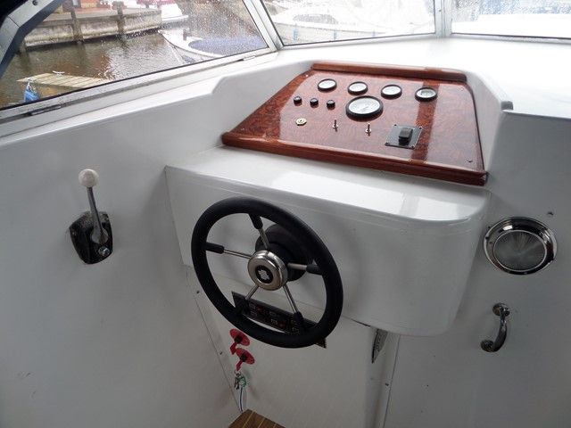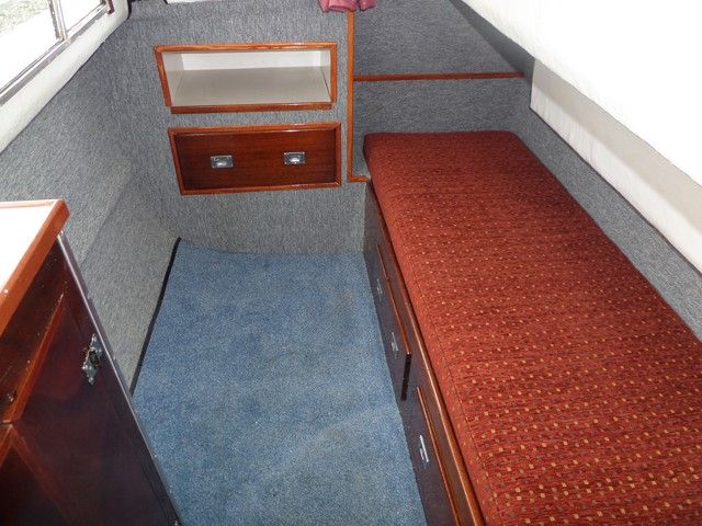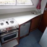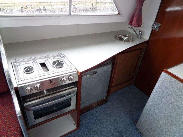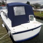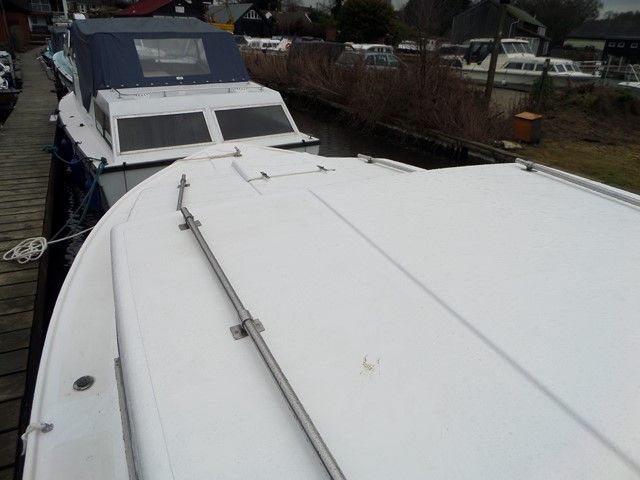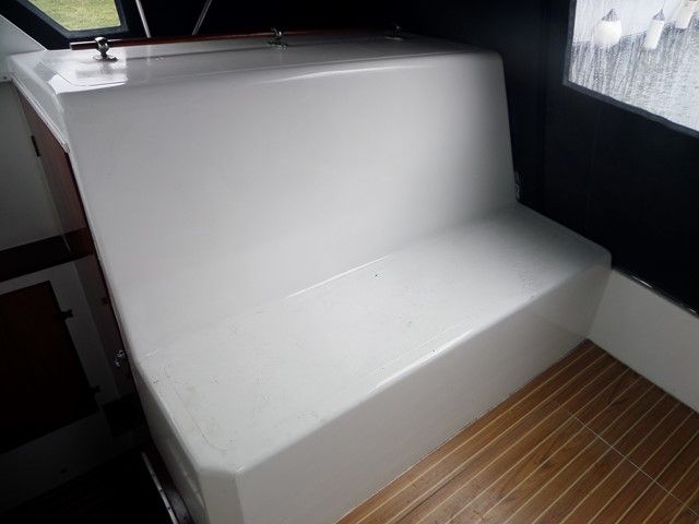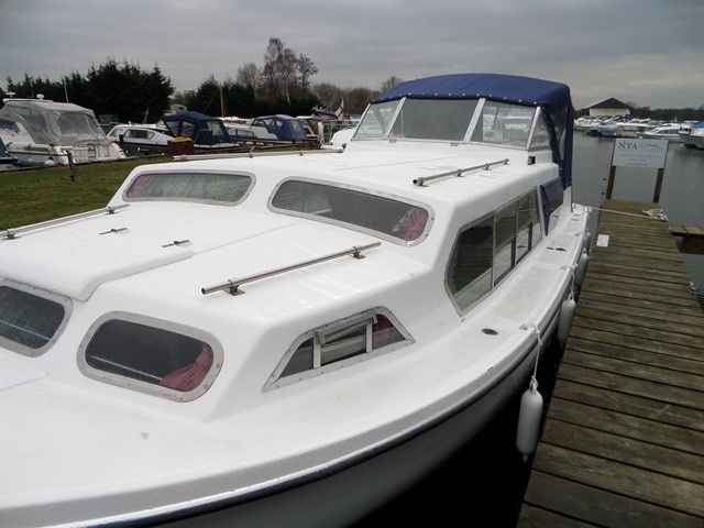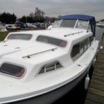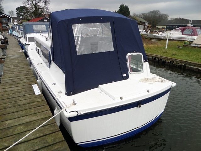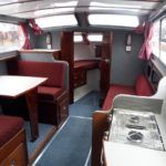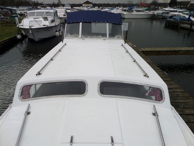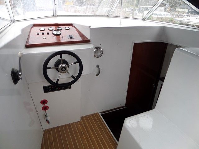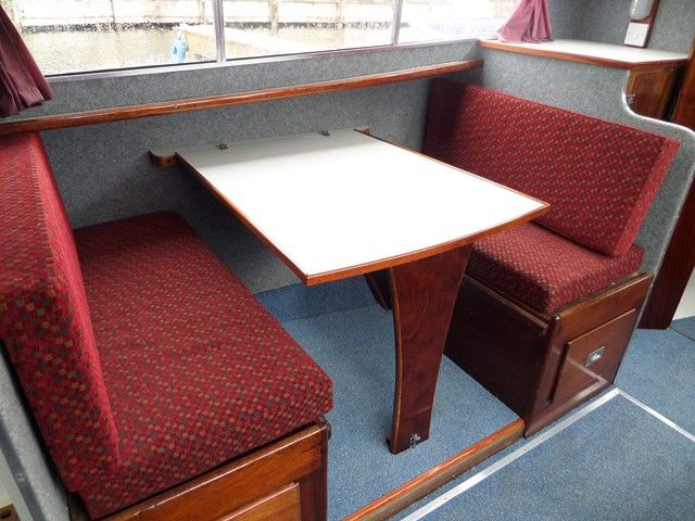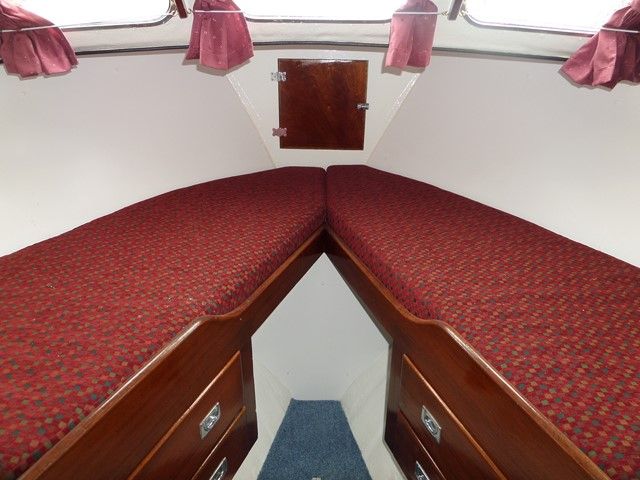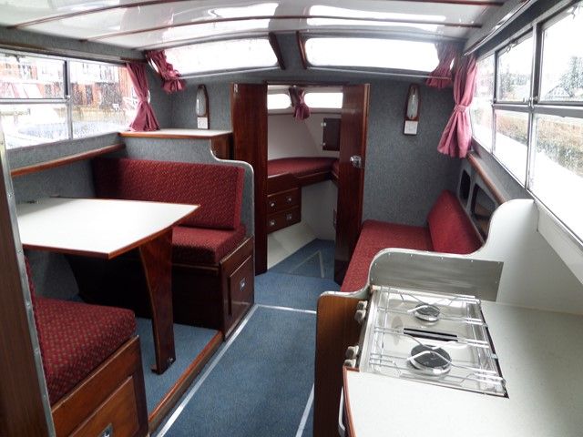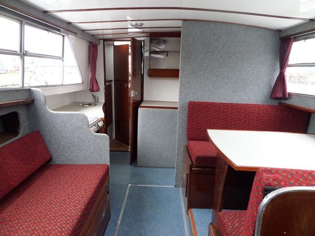 OCEAN 30 – Circa 1970 – Single Ford 1.8 Diesel Engine. 5 berths and 1 heads to holding tank and shower. Folding windscreen creating a low air draft making this an ideal inland cruiser. This boat was fully renovated to a high standard in 2014 including full antifoul, new canopy, carpet, starter motor, alternator and fuel and waste tanks.