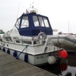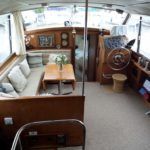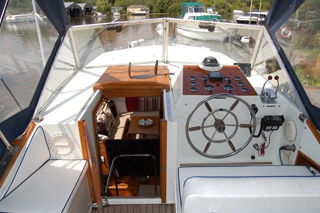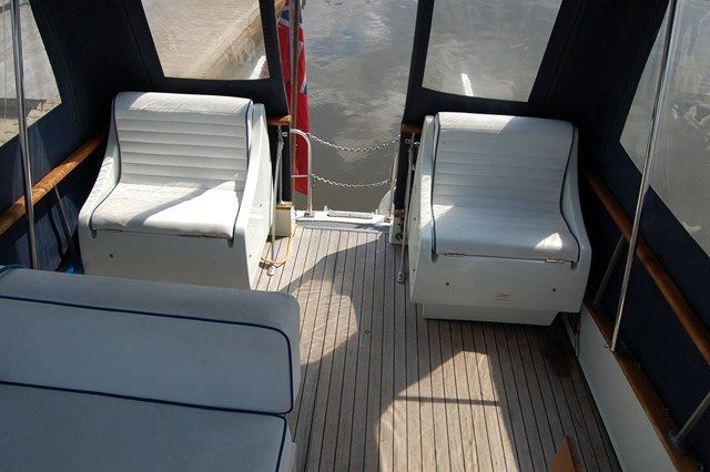 OCEAN 37 – 1976 Twin Perkins Lowline HT6.354M 145HP Diesel engines. 7 berths in 3 cabins with two toilets to holding tank and two showers. Webasto warm air heating, Radar, GPS, Battery Charger, folding screens. An accomplished and adaptable boat, equally at home at sea or inland.