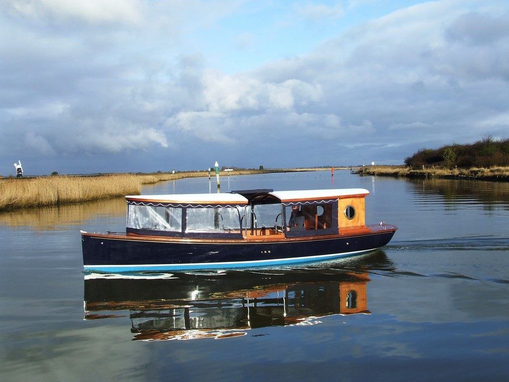 OTTER 26 LAUNCH – In Build Now 2022 delivery – Powered by a single Agni 3kw electric motor. Capability to carry 12 passengers and 2 crew. Beautifully timber finish to the superstructure with a GRP hull. Specification includes bowthruster, battery charger, cold water system and hydraulic steering. Designed by the well re-knowned Andrew Wolstenholme. A great chance to acquire a new build cruiser of a classic design, fantastic for exploring the inland waterways with friends and family! VIEWING STRICTLY BY APPOINTMENT