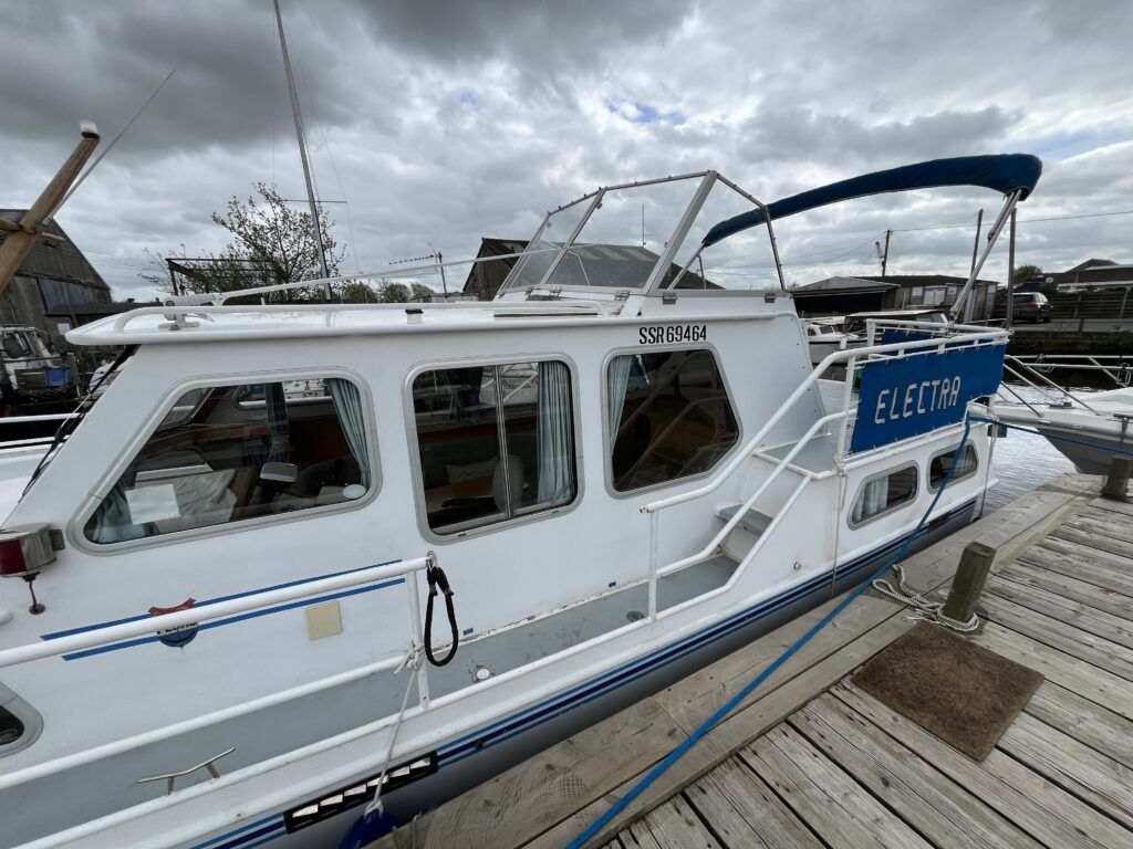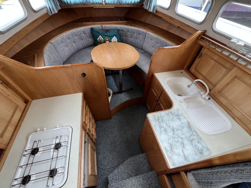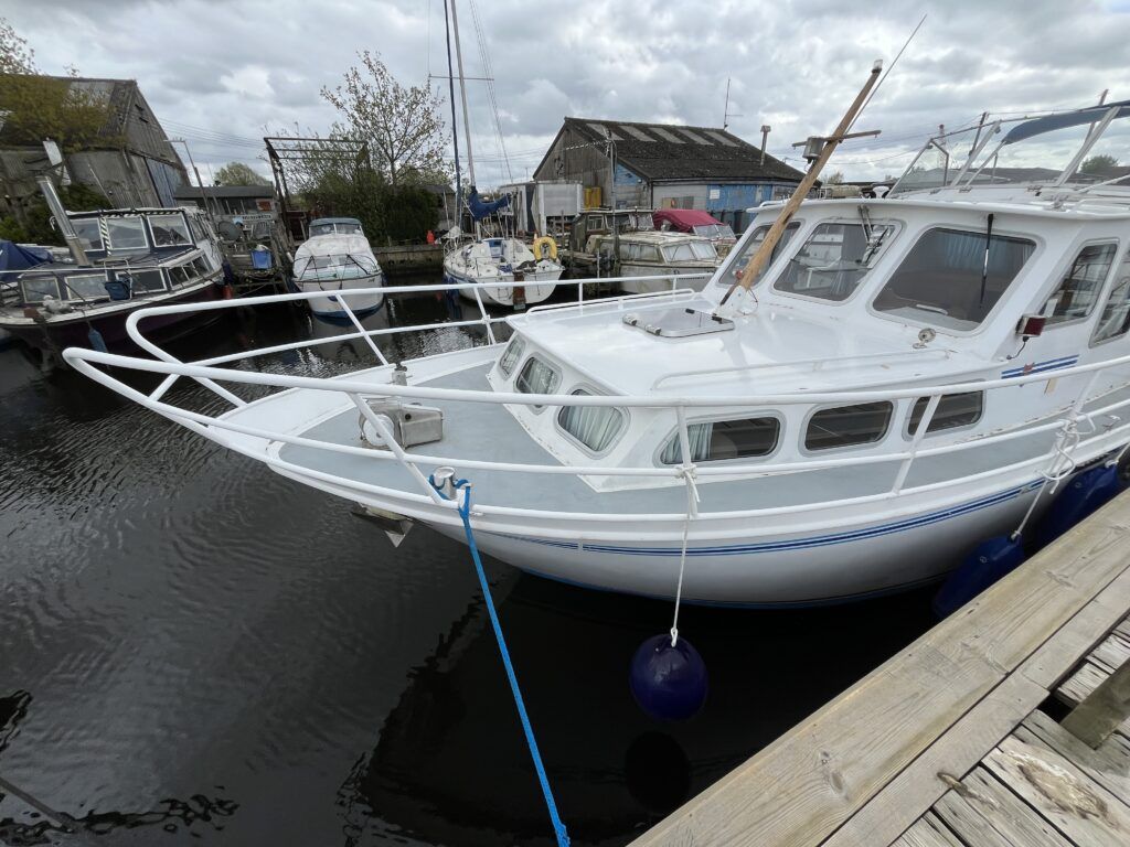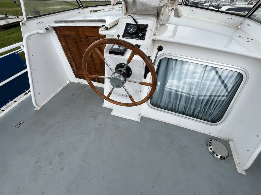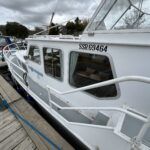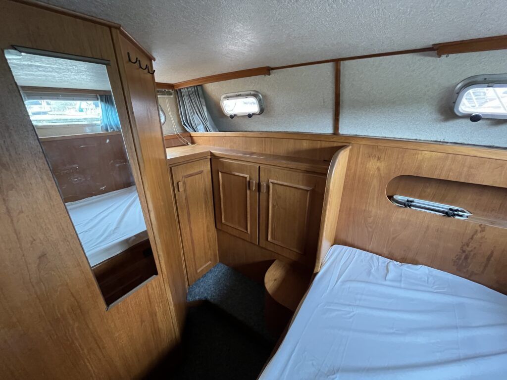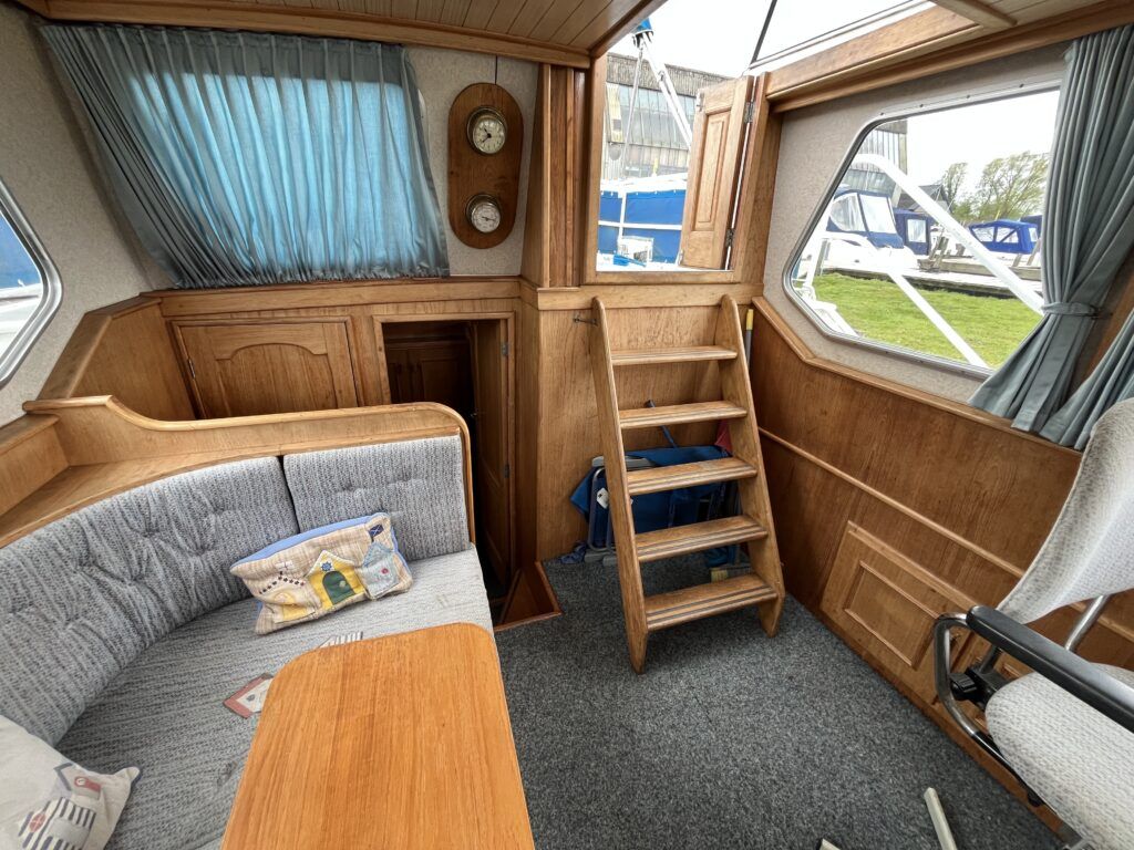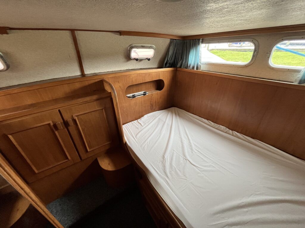 Pedro 30 – 1990 – Powered by a Volvo TMD31 100hp diesel engine through shaft. 4 berth accommodation over cabin and saloon with 1 x toilet/shower compartment. Specification including bow thruster, electric windlass, warm air heating, shore power, battery charger, immersion, VHF, Navman tracker 900, BSC 04/30. A spacious aft cabin dual steer cruiser, ideal for exploring the inland waterways with its low airdraft and comfortable layout.