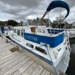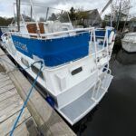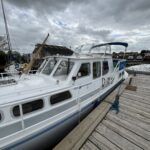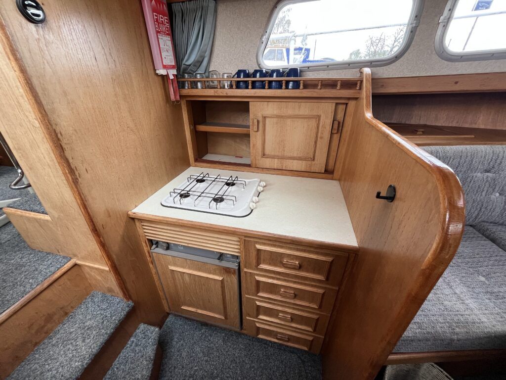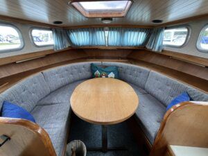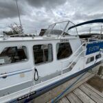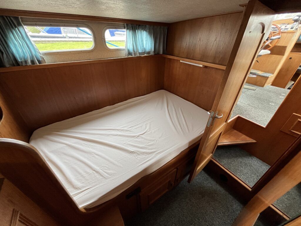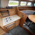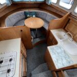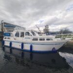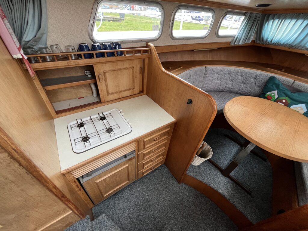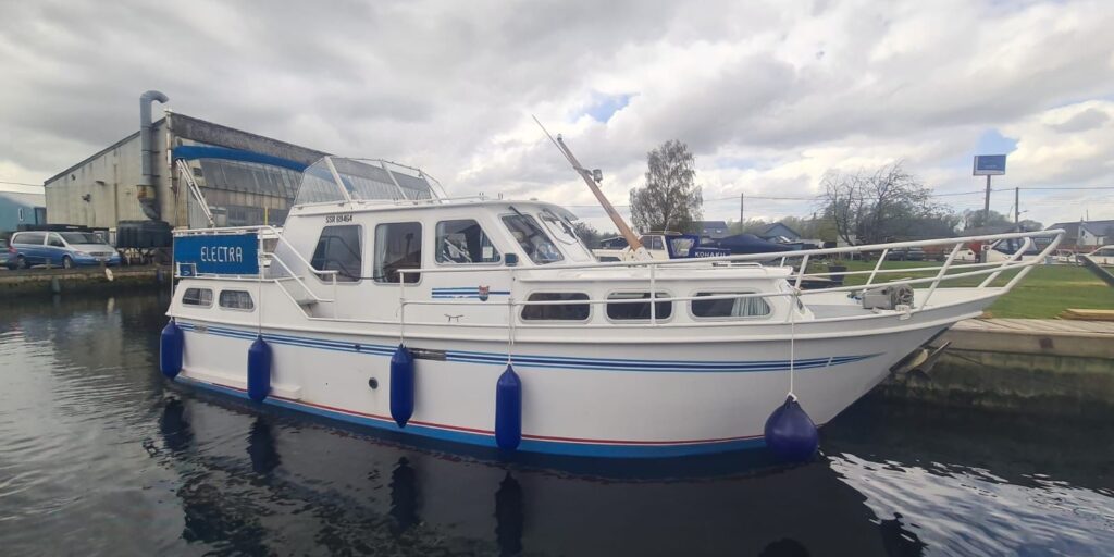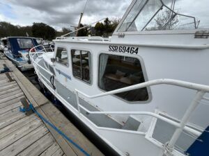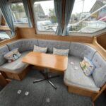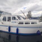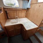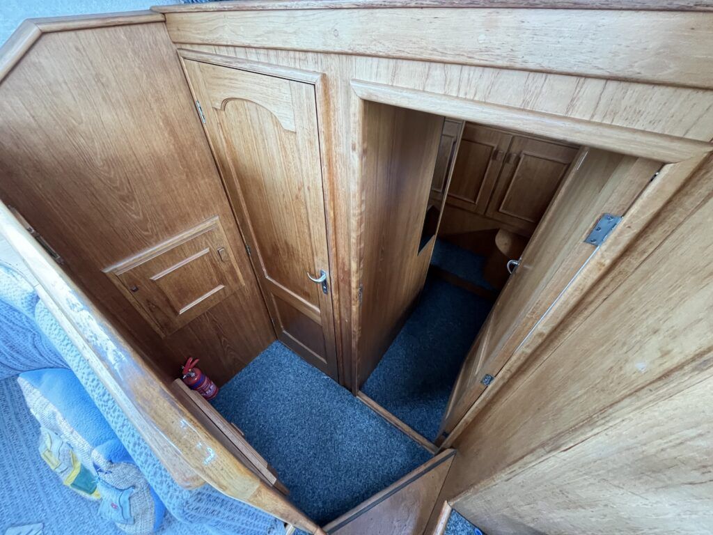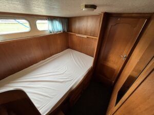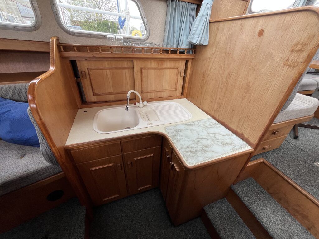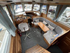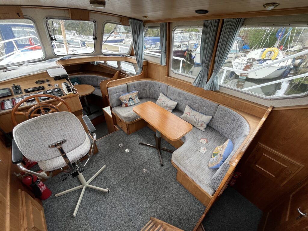 Pedro 30 – 1990 – Powered by a Volvo TMD31 100hp diesel engine through shaft. 4 berth accommodation over cabin and saloon with 1 x toilet/shower compartment. Specification including bow thruster, electric windlass, warm air heating, shore power, battery charger, immersion, VHF, Navman tracker 900, BSC 04/30. A spacious aft cabin dual steer cruiser, ideal for exploring the inland waterways with its low airdraft and comfortable layout.