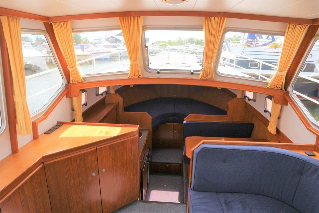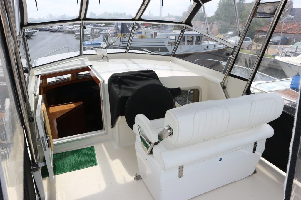 PEDRO LEVANTO 32 – 2009 – Powered by a single Perkins M92B 86hp diesel engine. 6 berth accommodation with one electric toilet and one shower. Specification to include; Bowthruster, warm air heating, Mastervolt inverter, electric anchor winch, holding tank and much more! BSC 07/21. Folding screens and arch. Well maintained by her current owner including annual servicing and bi-annual antifouling. A great opportunity to acquire a category B rated Pedro 32 presented in exceptional condition. A low air draft motor cruiser with comfortable & spacious accommodation, ideal for extended inland boating!