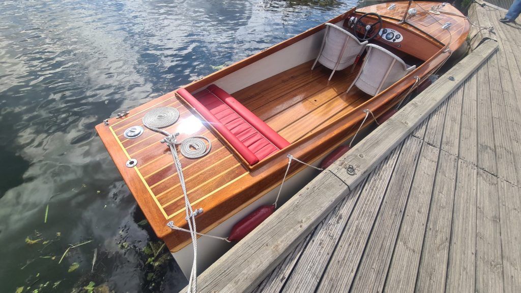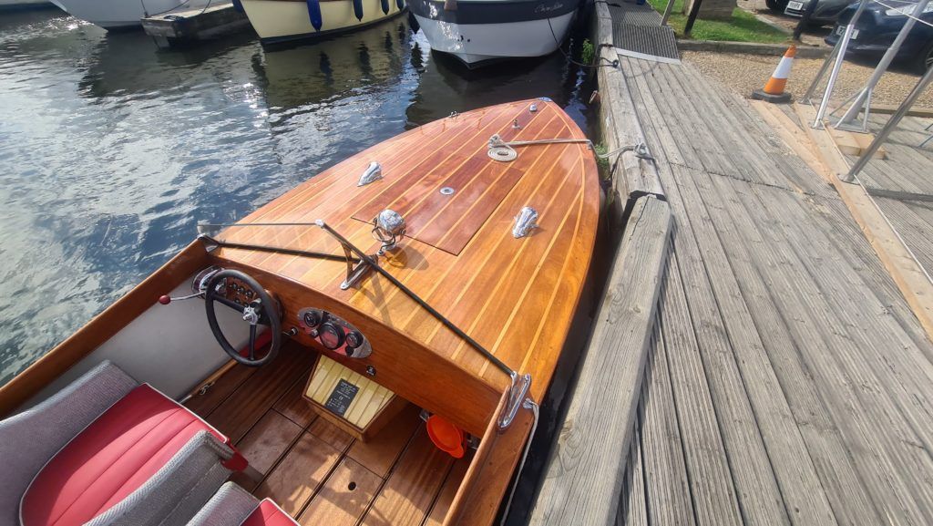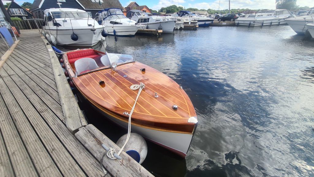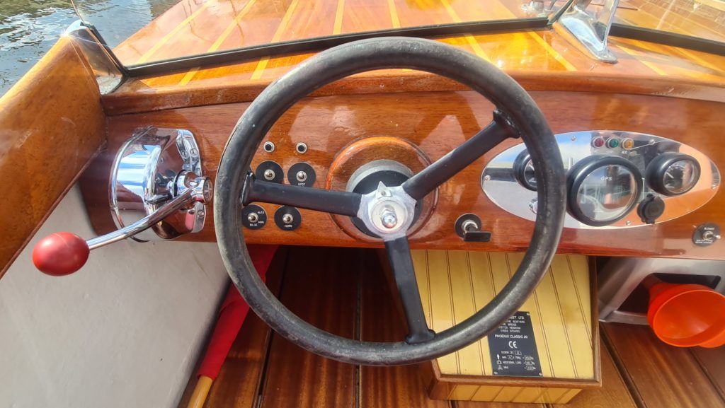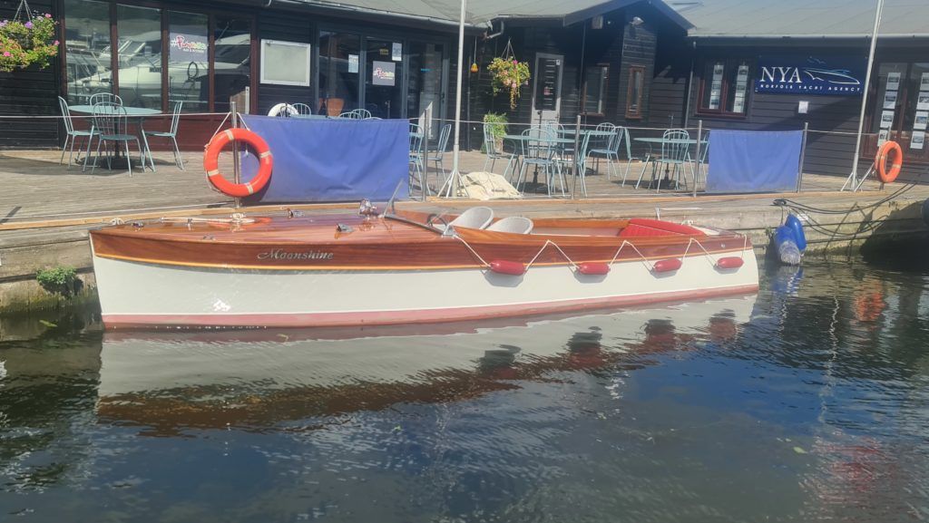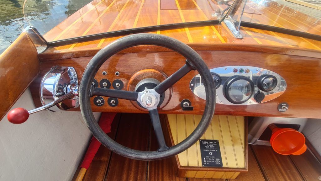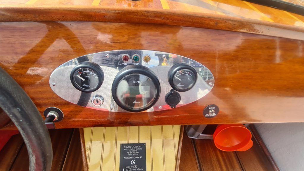 Phoenix Fleet Classic 20 Launch -2019 – Ford Watamotor 38 on shaft – Specification to include – Navigation lights, search light, GPS, mud weight, Boat Cover, engine serviced july 2022. Boat safety certificate until July 2023. A delightful modern gentleman’s launch full of character ideal for days exploring the broads with friends and family.