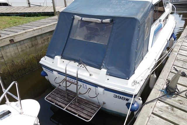 PRINCESS 25 – Circa 1980 – Single Volvo 145 Petrol Engine – 4 berths with 1 sea toilet. Shore power, Bilge pump, Bathing platform, Full cockpit canopy. A versatile cruiser with surprising internal space making for an ideal introduction to cruising. BSSC until June 2016