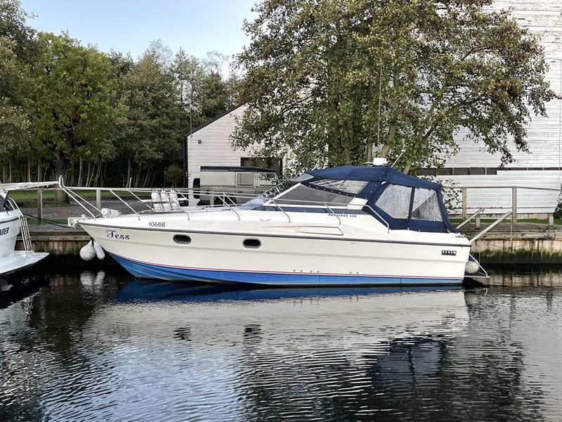 Princess 286 – 1985 – Powered by twin Volvo Penta TAMD40B 165hp diesel engines. 4 berth accommodation with a toilet and shower. Occasional summer berth in cockpit. Specification to include; Shore power, Battery charger, power steering, trim tabs, a range of navigation equipment. Recent work includes; Engines rebuilt in 2020, engine and outdrive service, antifoul, and polish/compound 2022, BSC 10/24, large cushioned cockpit. A well-maintained example of a sought-after twin diesel sports cruiser that offers an affordable introduction to offshore boating.