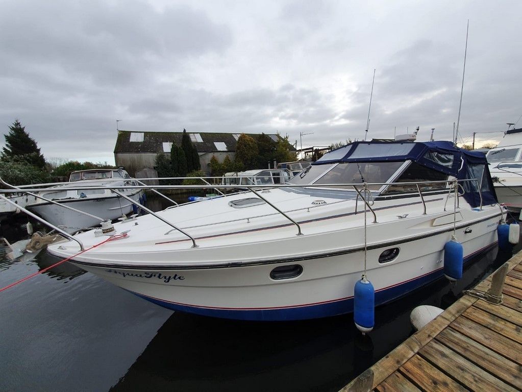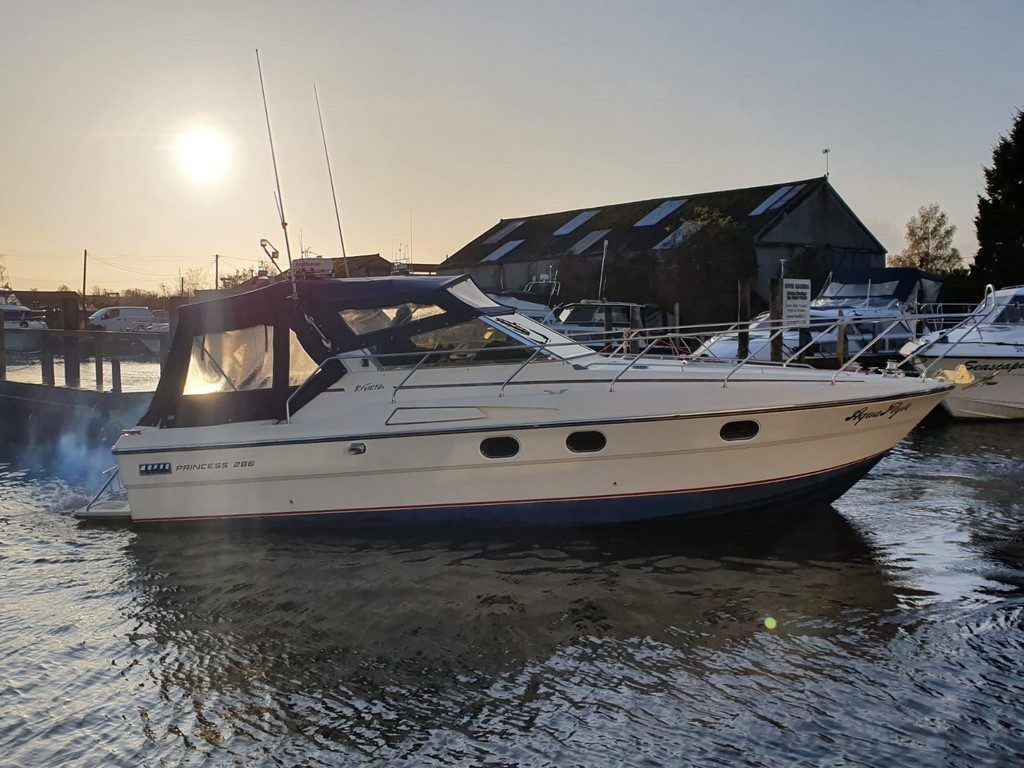 PRINCESS 286 – Circa. 1990 – Powered by twin Volvo AD41B 200hp diesels. 4 berth accommodation with toilet and shower. Specifcation to include; Warm air heating, trim tabs, electric windlass, shore power supply with 240v sockets, VHF and a range of navigation equipment. Recent engine service. A sought after diesel sports cruiser that would make a good introduction into offshore boating.